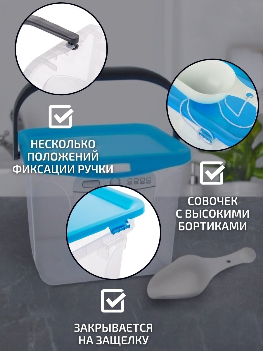 Контейнер для стирального порошка с ручкой, 6 л, цвет голубая лагуна