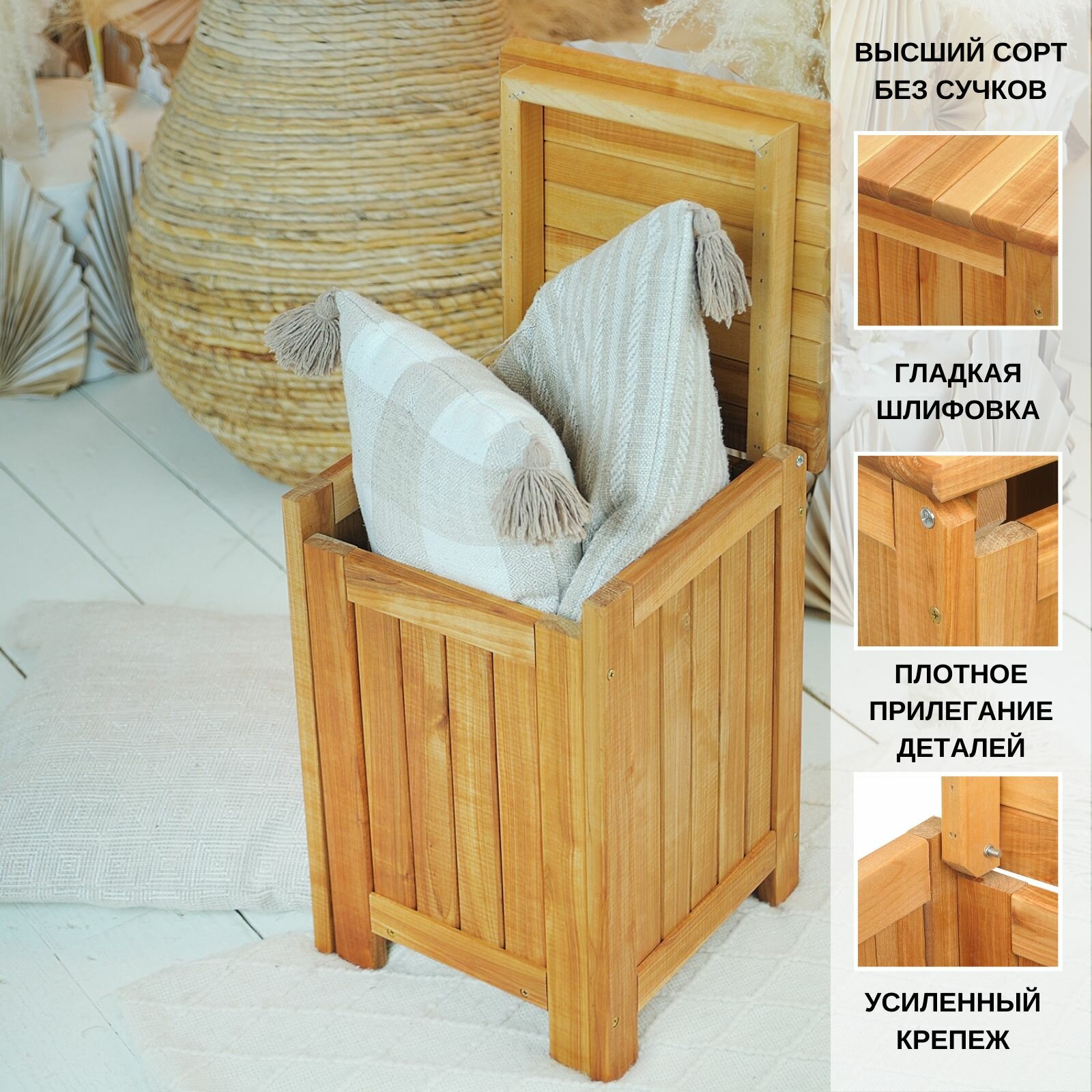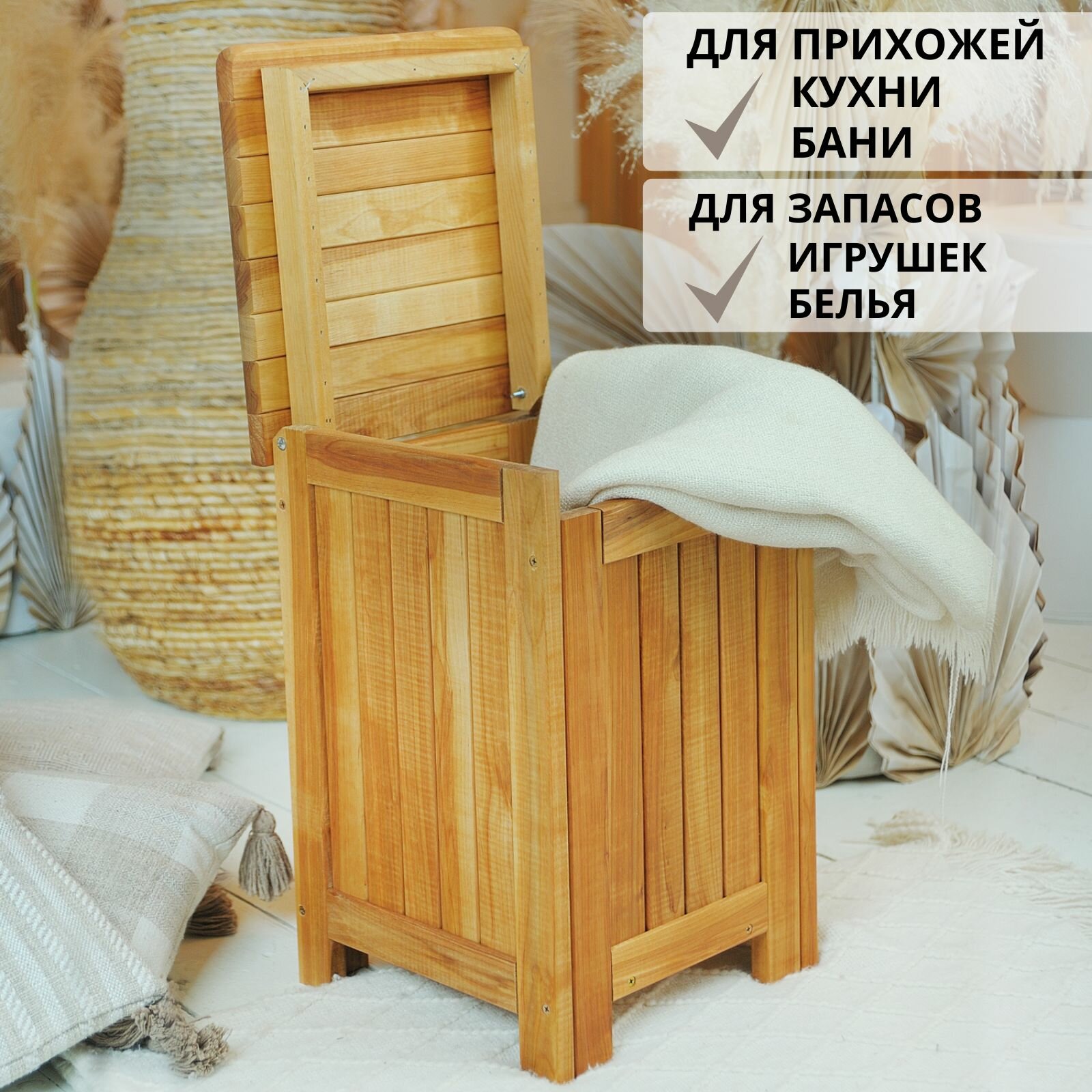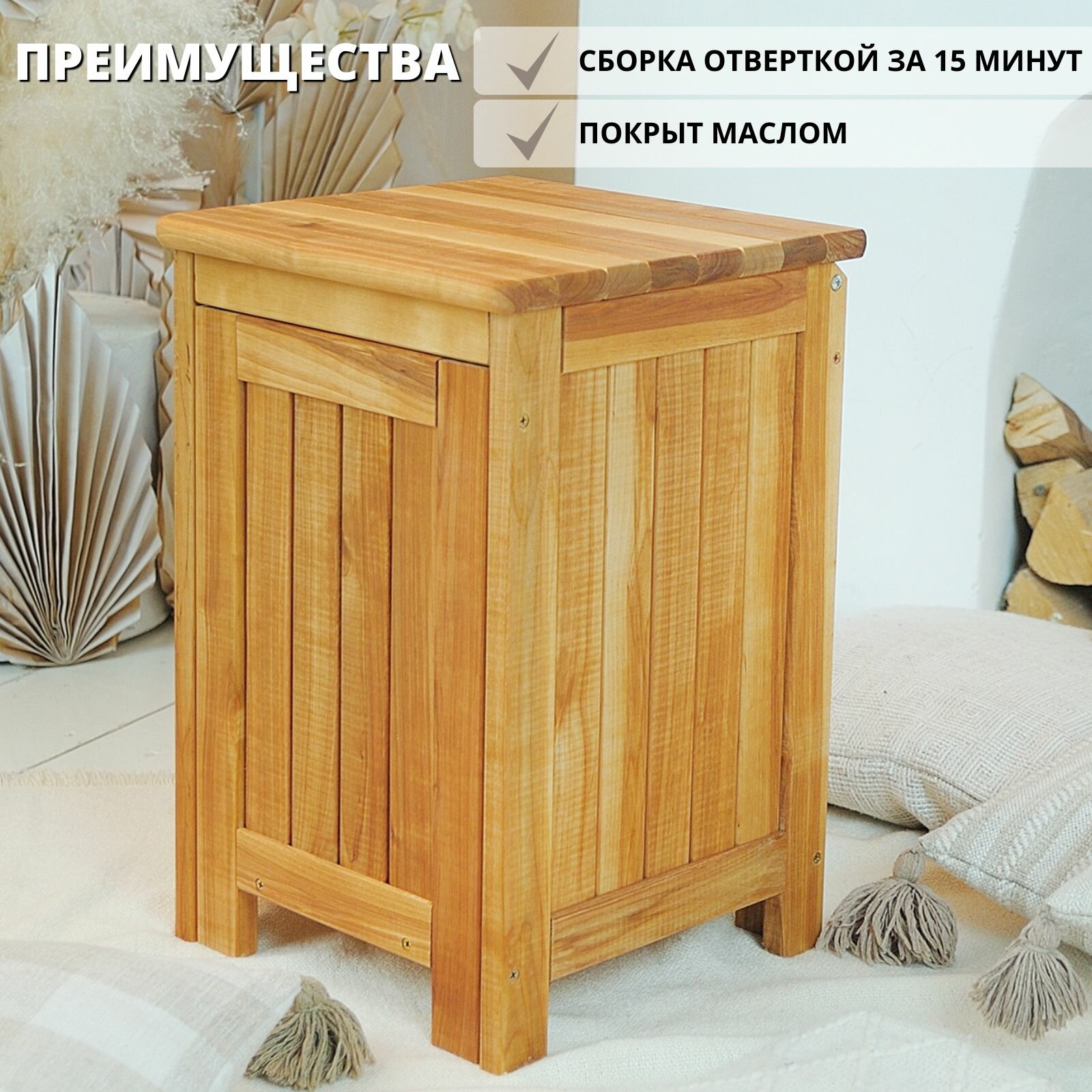 СохранитьСундук - табурет деревянный, ящик для хранения с крышкой из массива березы, SCANDY MEBEL, 46х30х30 см интересное: