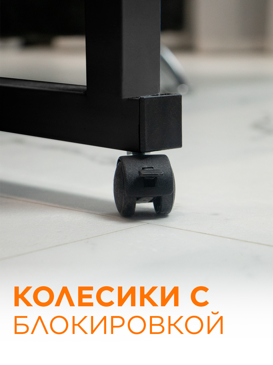 | Подробная комплектация | Столешница - 1шт; Верхнее крепление - 2шт; Ножки - 2шт; Колеса - 4шт; Фиксаторы высоты - 2шт; Саморезы; Отвертка |