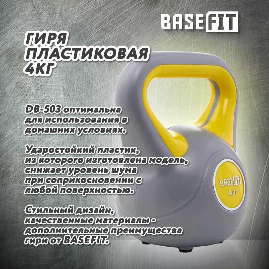 Гиря пластиковая BASEFIT DB-503, 4 кг, серый/желтый
