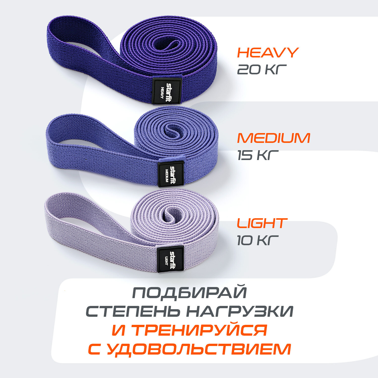 Купить Эспандеры для кроссфита STARFIT ES-205 текстиль, фиолетовый, 3 шт.