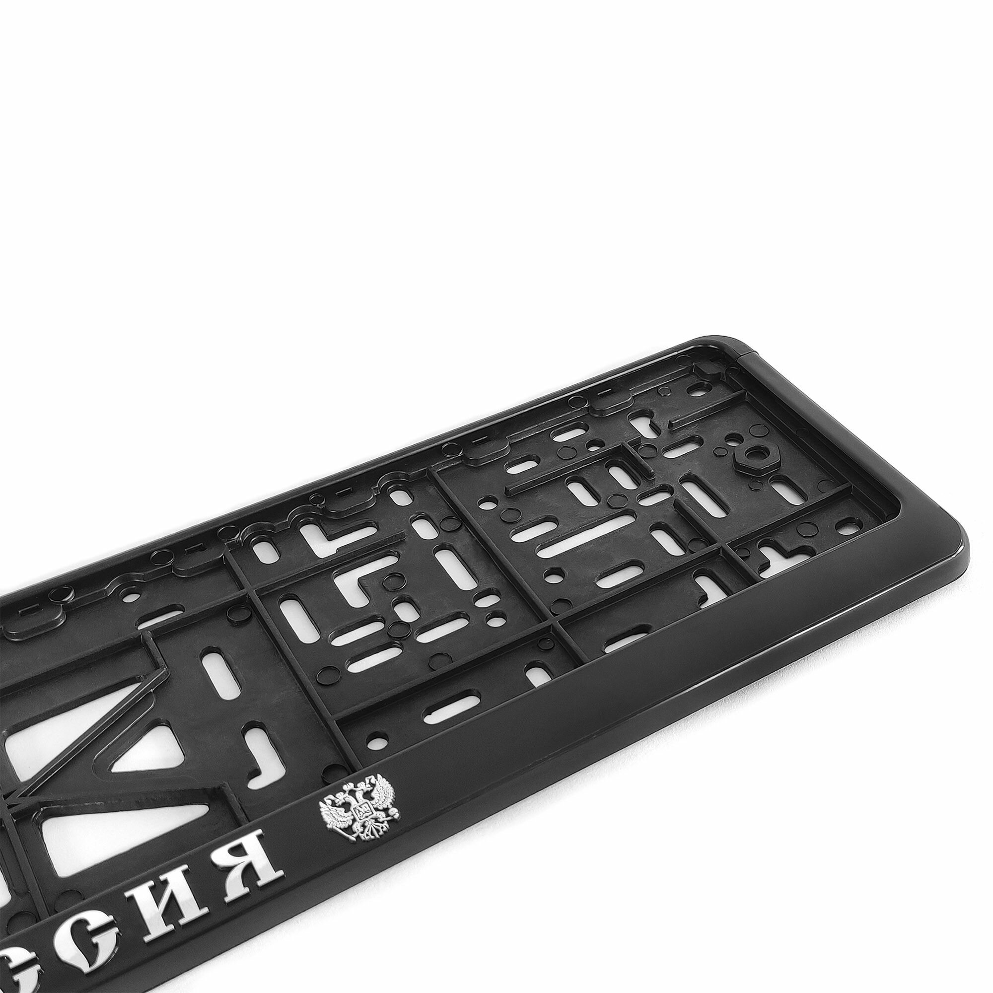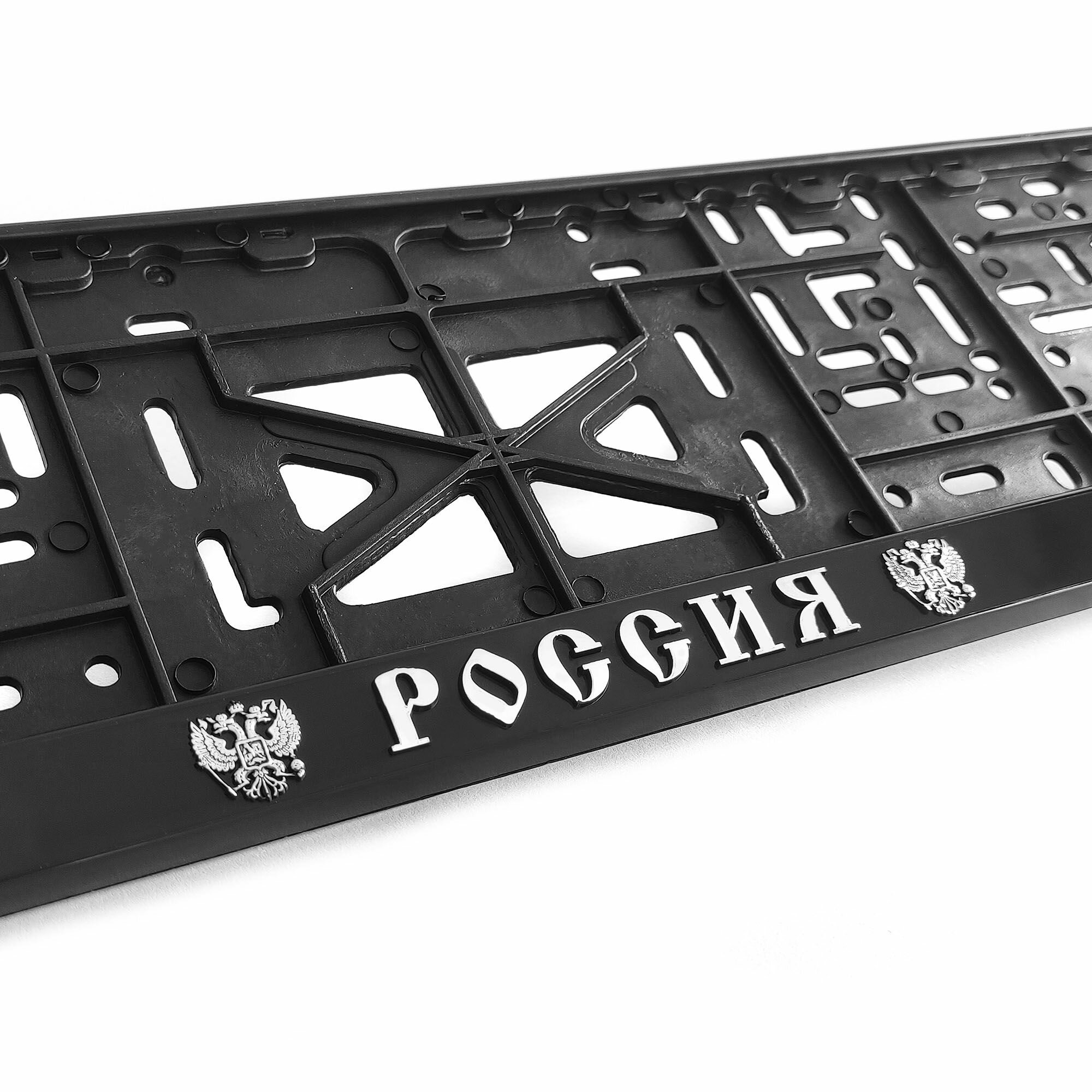 Рамка для номера автомобиля с защелкой, пластиковая, черная, Российская Федерация серебро