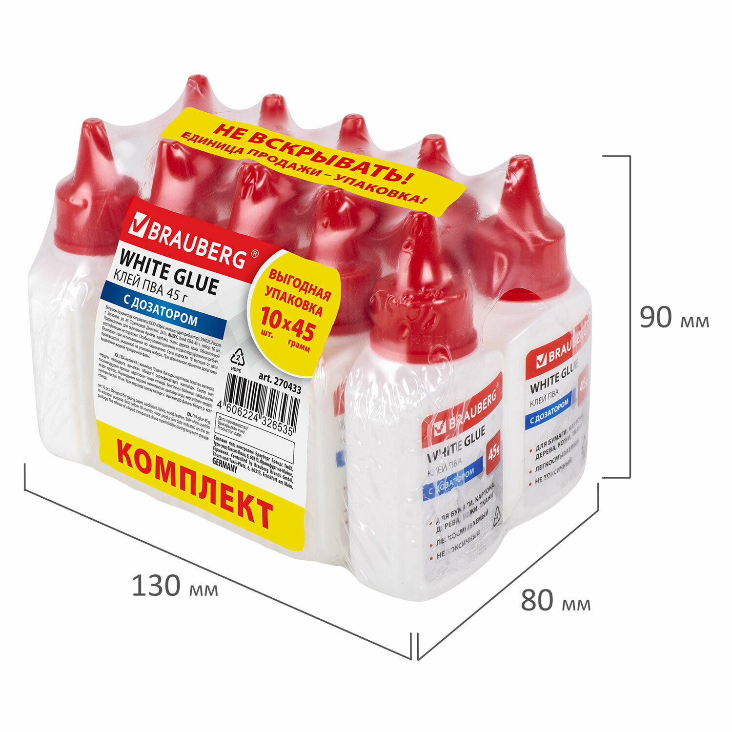 Клей ПВА Brauberg 10 штук по 45 г (93)