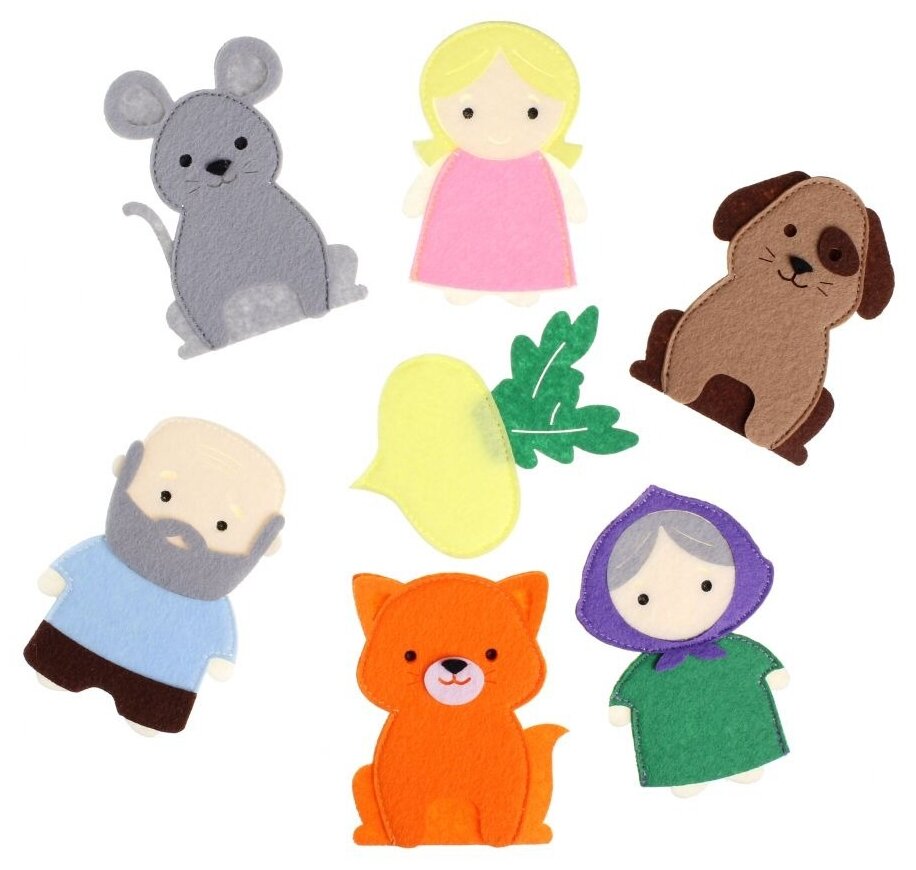 Пальчиковый театр. Репка (7 фигурок, 8 подставок, фетр, дерево, в пакете, от 0 лет) 1101012, (ООО "Фетров")