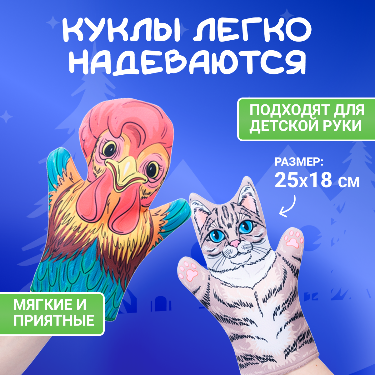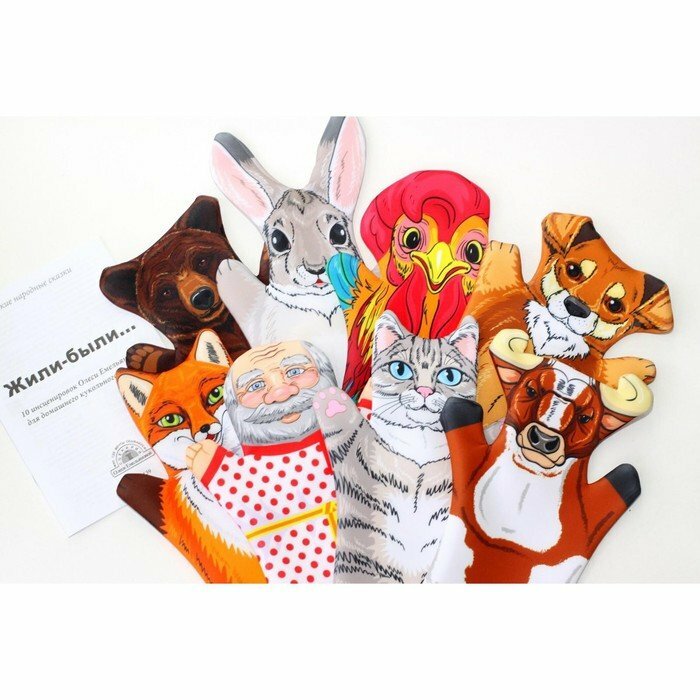 Кукольный домашний театр "Жыли-были", с куклами-рукавичками, сюжетно-ролевой набор из 8 мягких игрушек-перчаток + сценарий в стихах к 10 сказкам