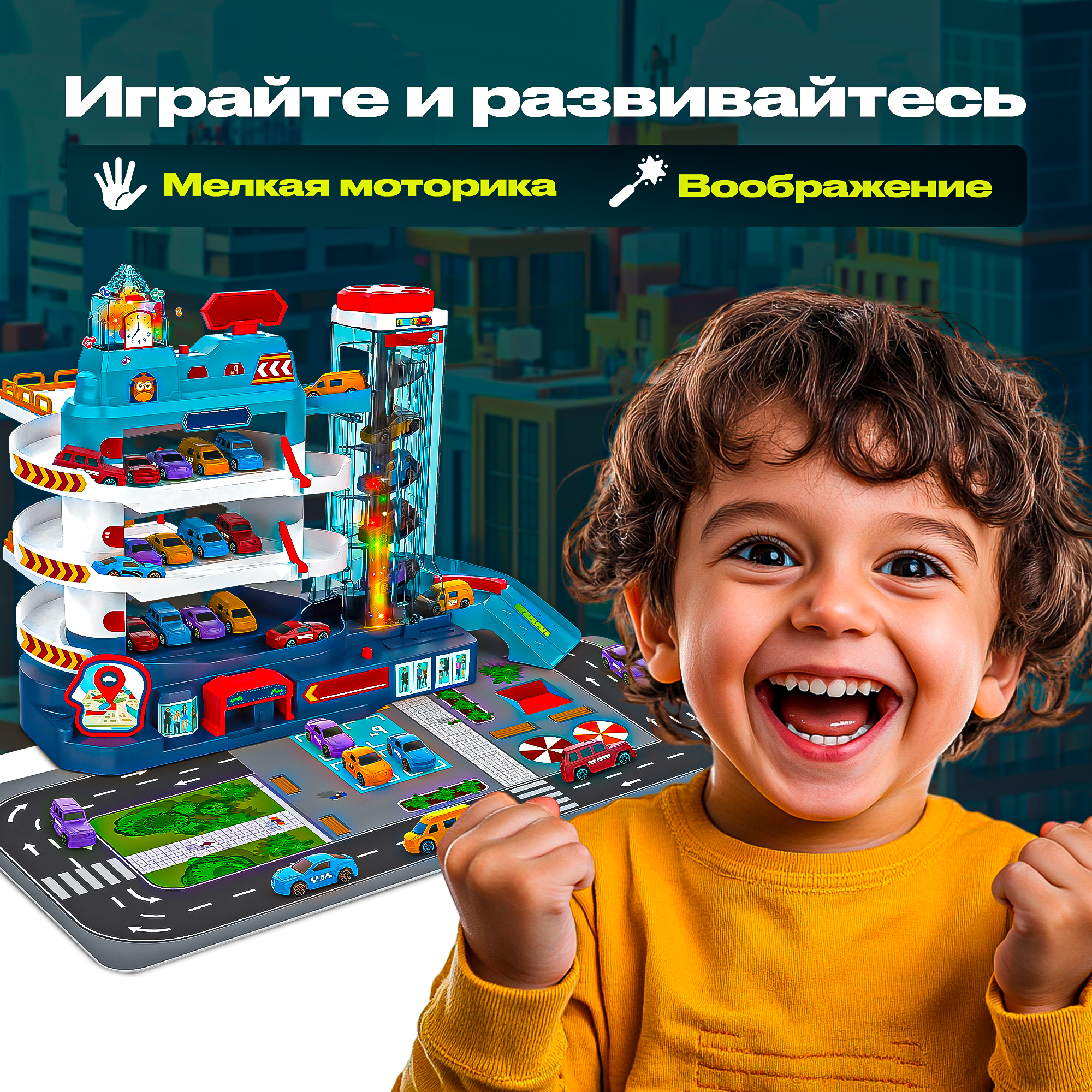 Купить Парковка "Городской паркинг" с 4 машинками и лифтом, свет и звук