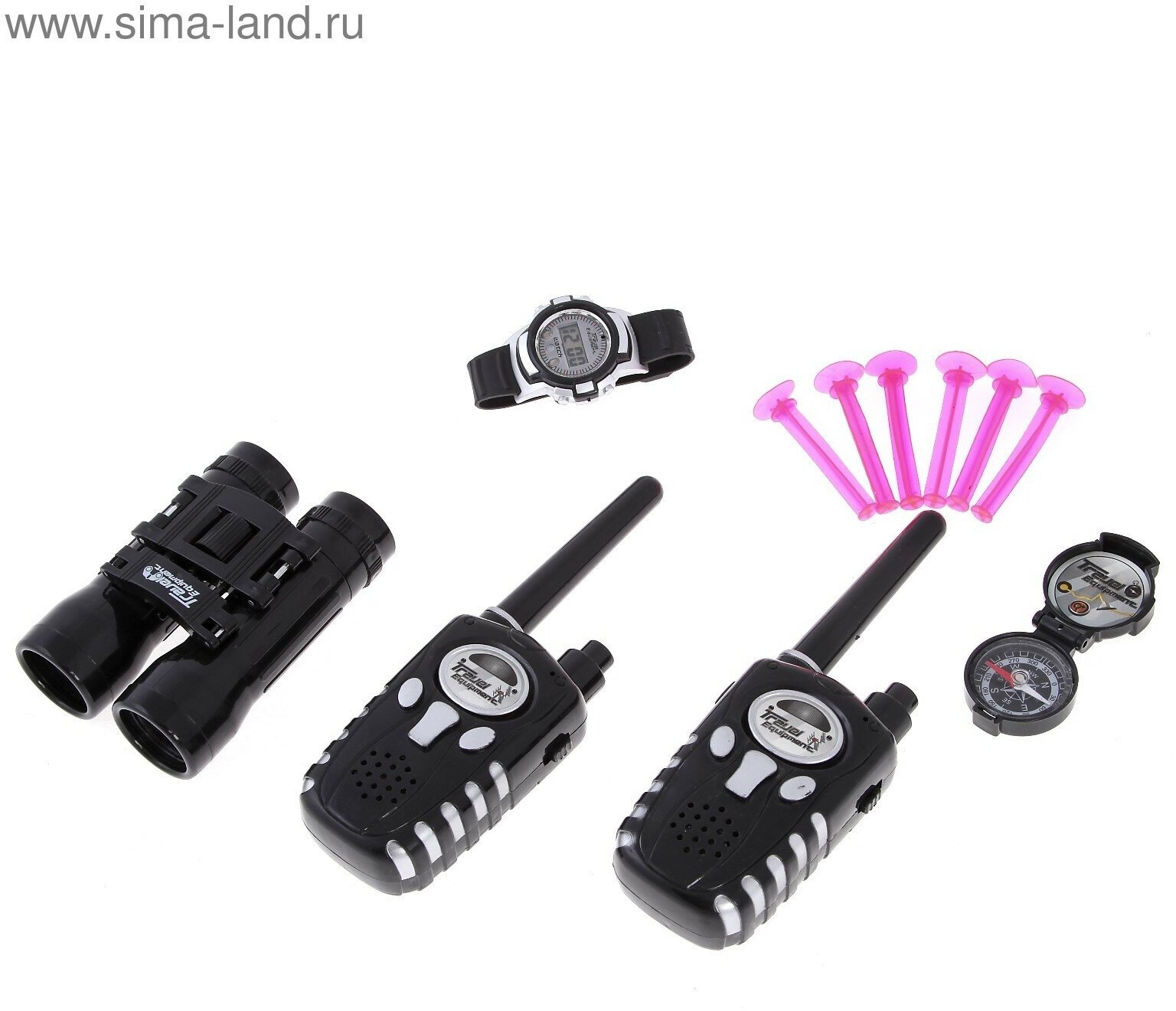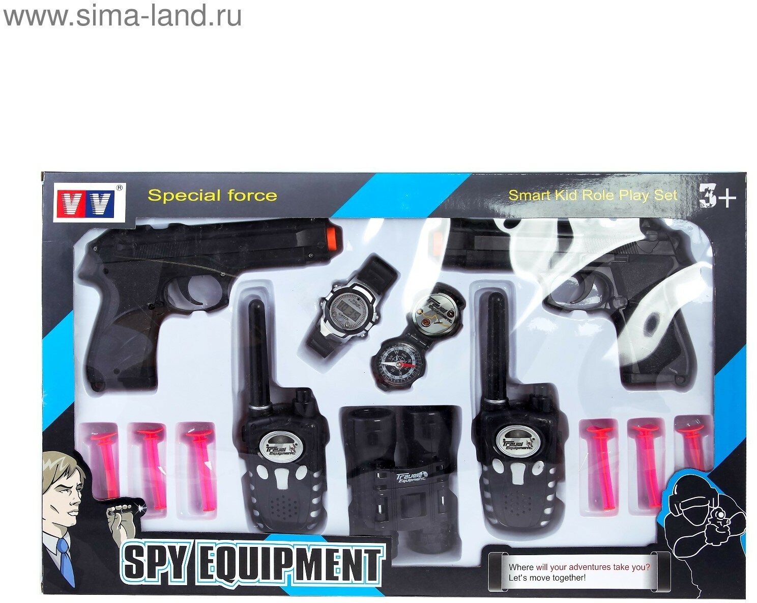 Набор шпиона "Двойной агент": 2 пистолета, 2 рации, часы, компас, бинокль, цвет черный интересное:
