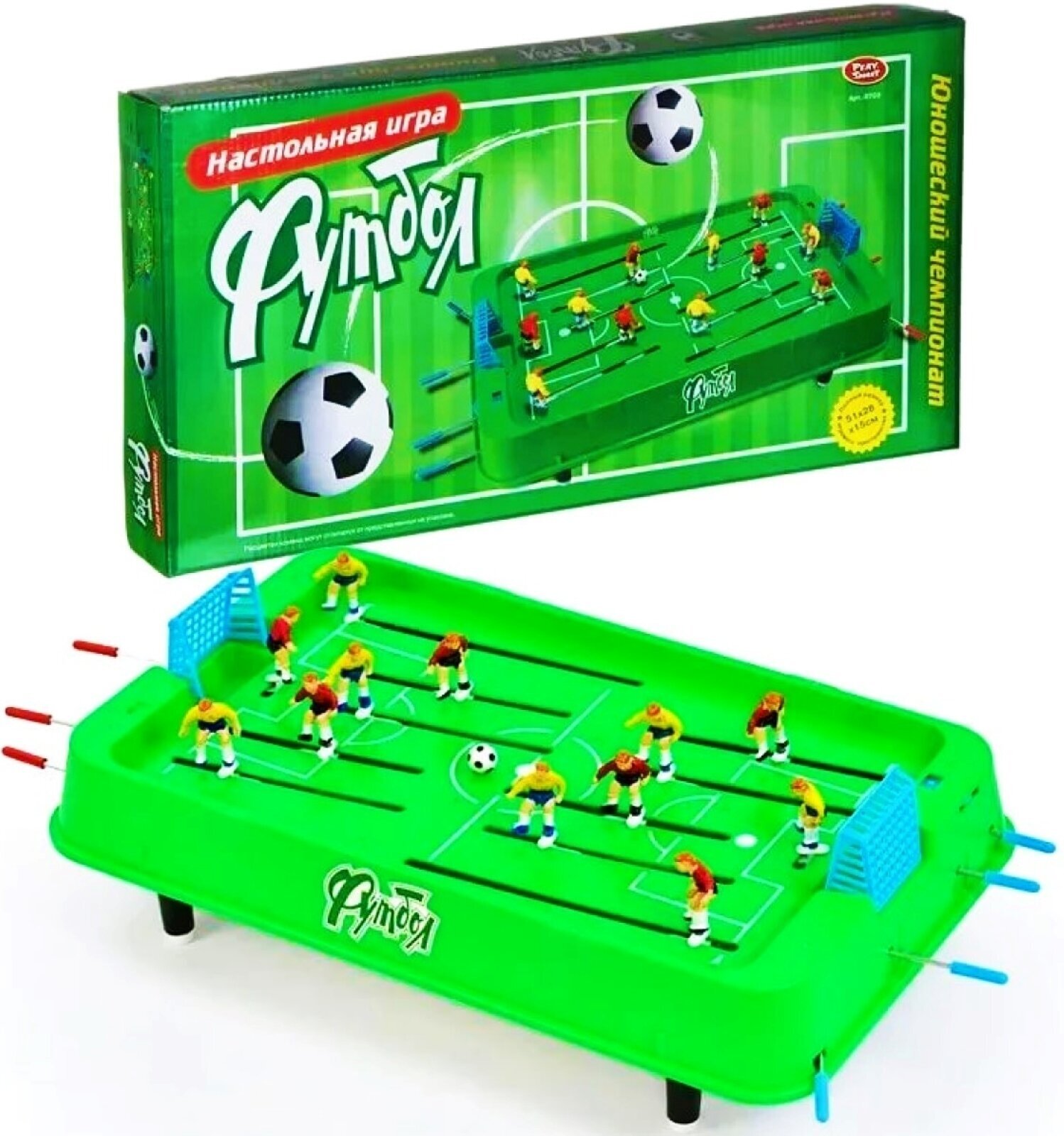 | Комплектация | игровая площадка - 1 шт. ножки для поля - 4 шт. фигурка "Футболист" - 12 шт. ворота - 2 шт. мяч - 1 шт. наклейки правила игры - 1 шт. коробка - 1 шт. |