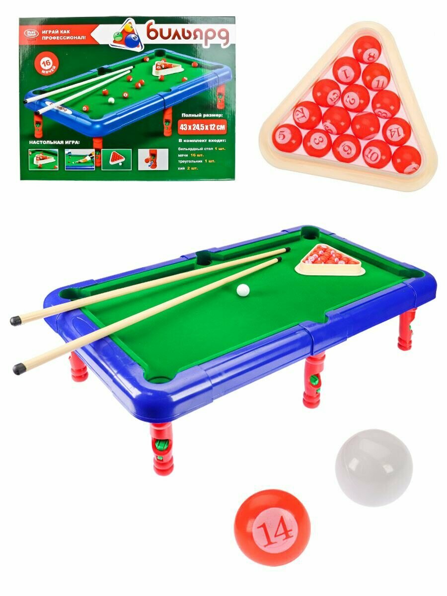 Play Smart Настольная игра Бильярд размер поля 43х24,5х12 см, 16 шаров 2264 с 7 лет