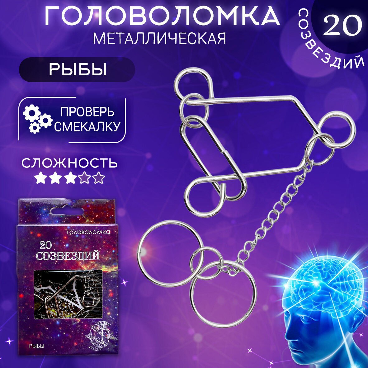 Купить Головоломка 20 Созвездий (N 11) Рыбы, металлические головоломки детские, взрослые, подарочный набор, развитие мелкой моторики, логики