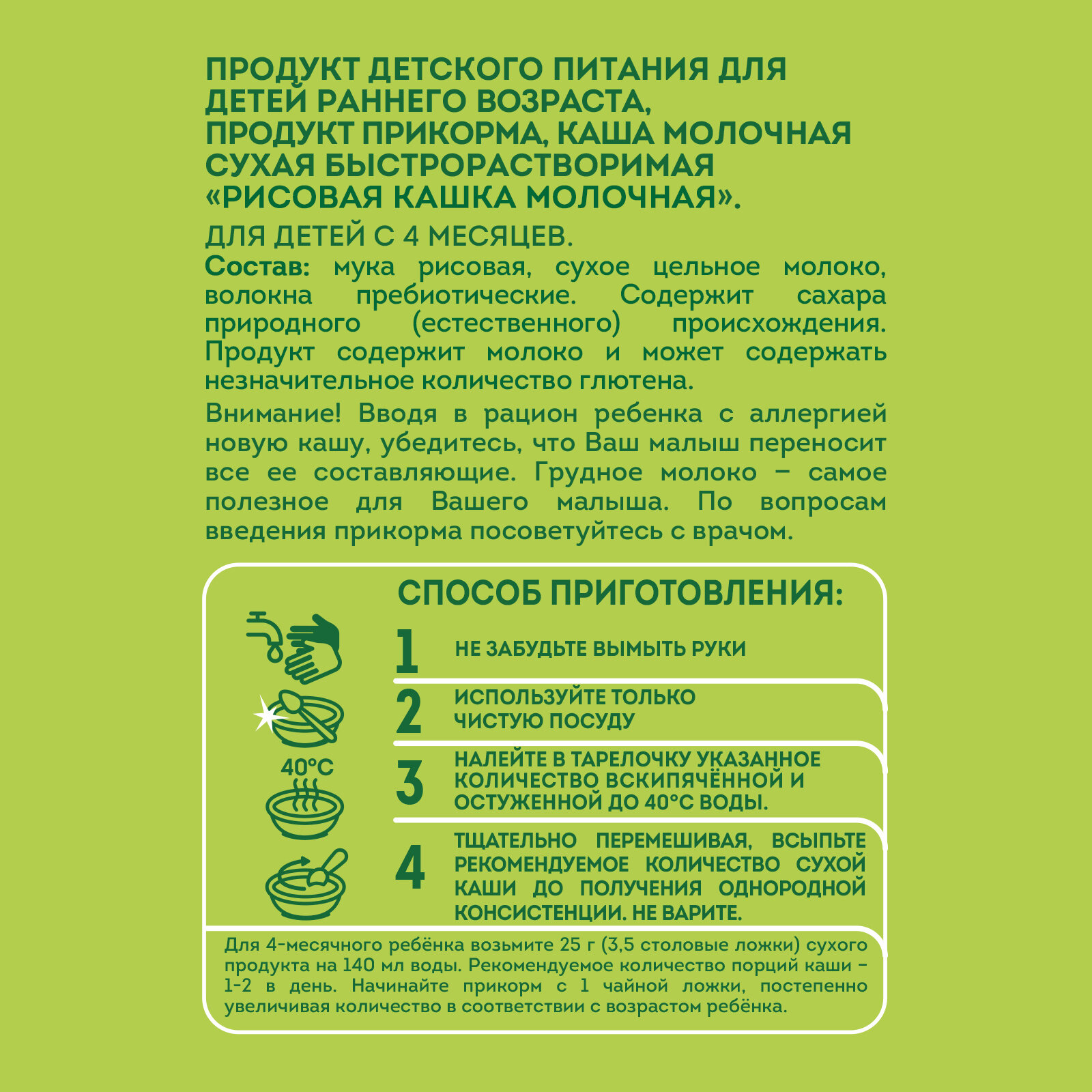 | Состав | мука рисовая, сухое цельное молоко, волокна пребиотические |