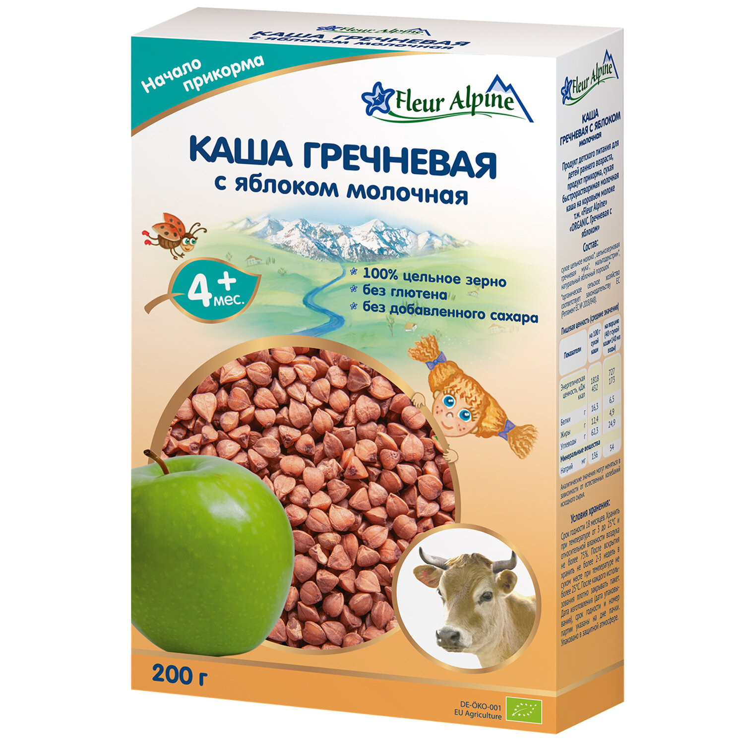Купить Каша молочная детская Fleur Alpine гречневая С яблоком, с 4 месяцев, 200 г