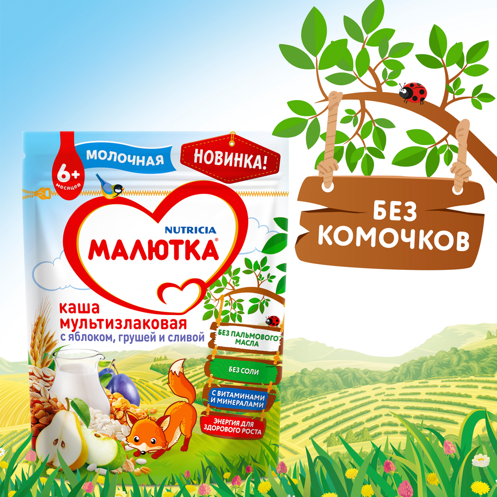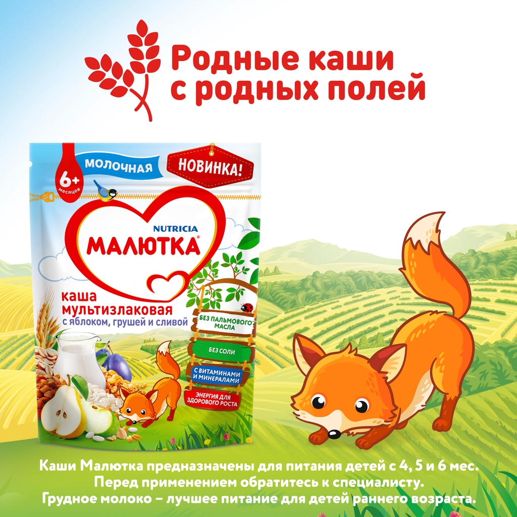 Каша мультизлаковая малютка молочная с яблоком, грушей и сливой, с 6 месяцев, 220г интересное:
