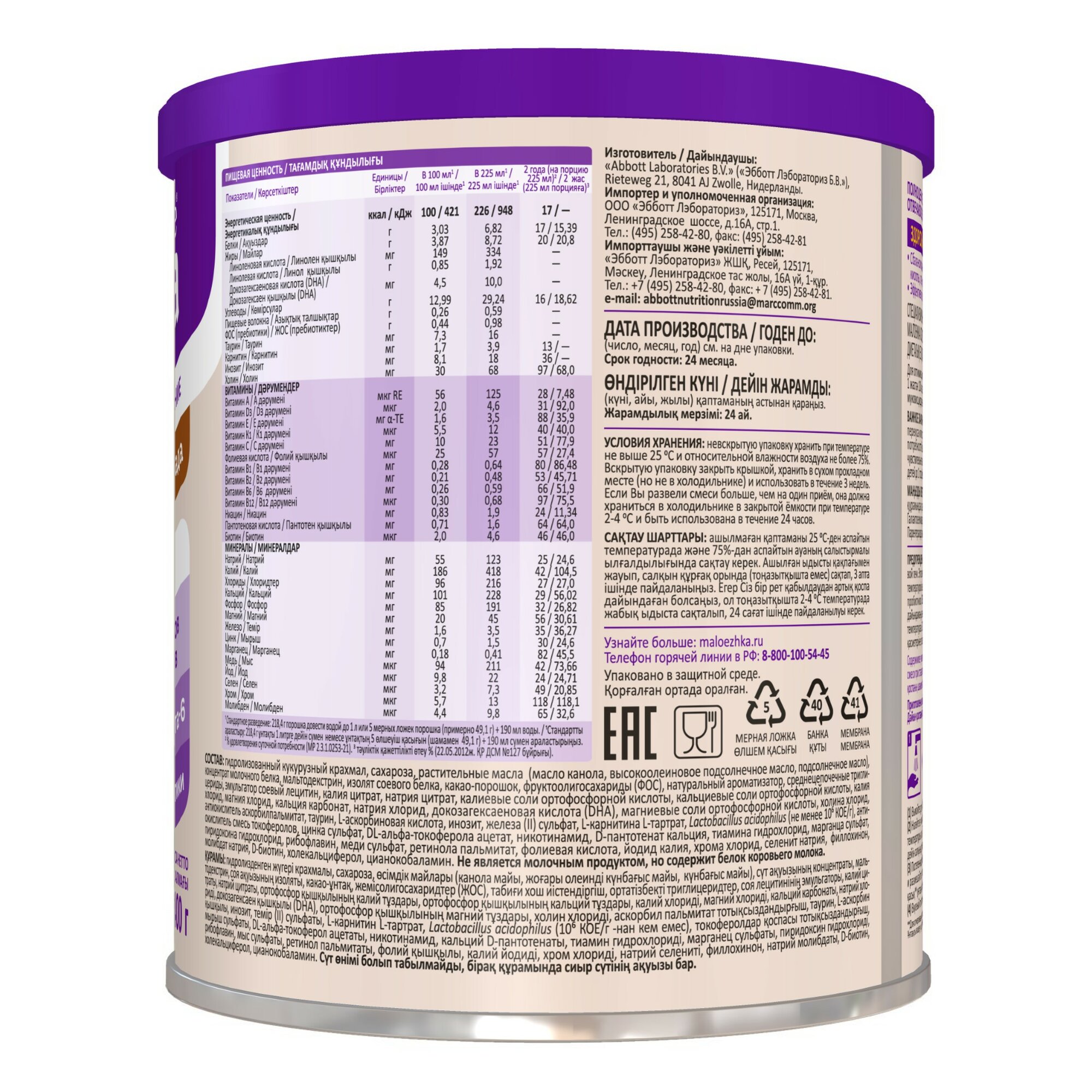 | Дополнительная информация | не использовать при галактоземии, подходит для детей с повышенной чувствительностью к лактозе |