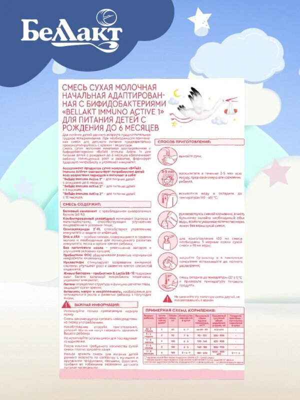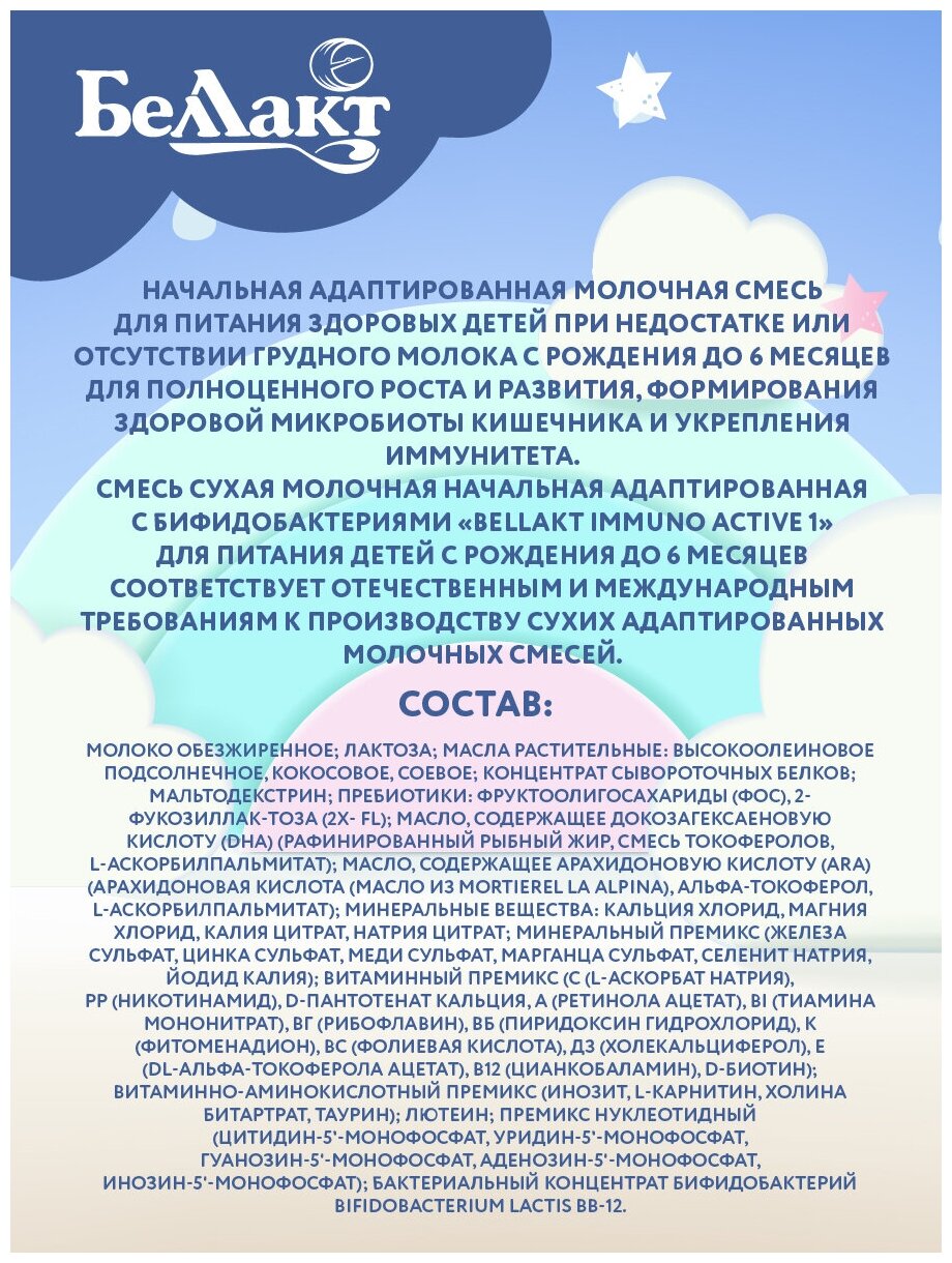 Смесь сухая молочная начальная адаптированная с бифидобактериями "Bellakt Immuno Activе 1" для питания детей с рождения до 6 месяцев интересное: