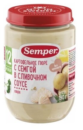 Пюре рыбно-овощное SEMPER Картофельное пюре с семгой в сливочном соусе, с 12 месяцев, 190г интересное: