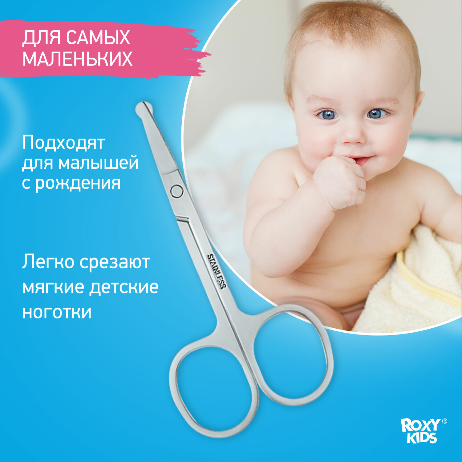 Маникюрные детские ножницы цельнометаллические для новорожденных и малышей от ROXY-KIDS