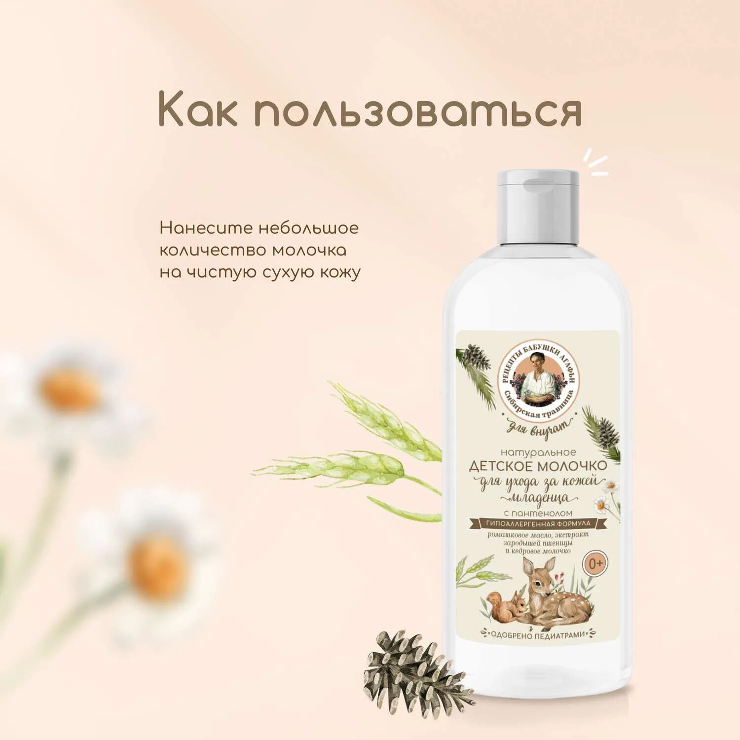 Рецепты бабушки Агафьи Молочко для тела детское, ухода за кожей младенца, натуральное с пантенолом Для внучат 0+ 250мл интересное: