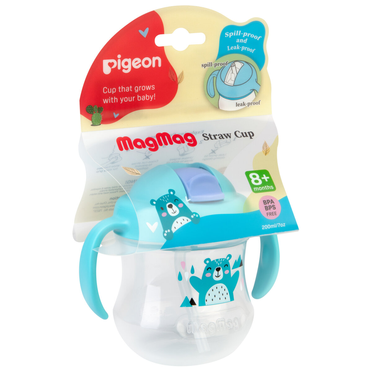 Купить Pigeon Поильик MagMag с трубочкой Мишка 8+ мес 200 мл 1 шт