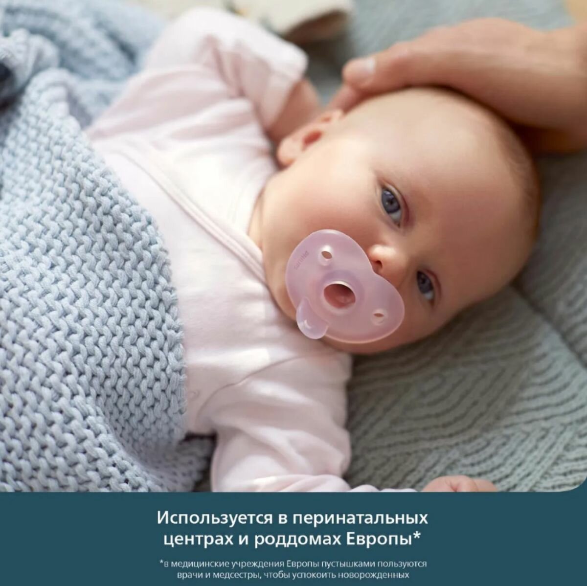 Пустышка силиконовая ортодонтическая Philips Avent Ultra Soft SCF222/02, от 0 до 6 месяцев, 2 шт., розовый/белый