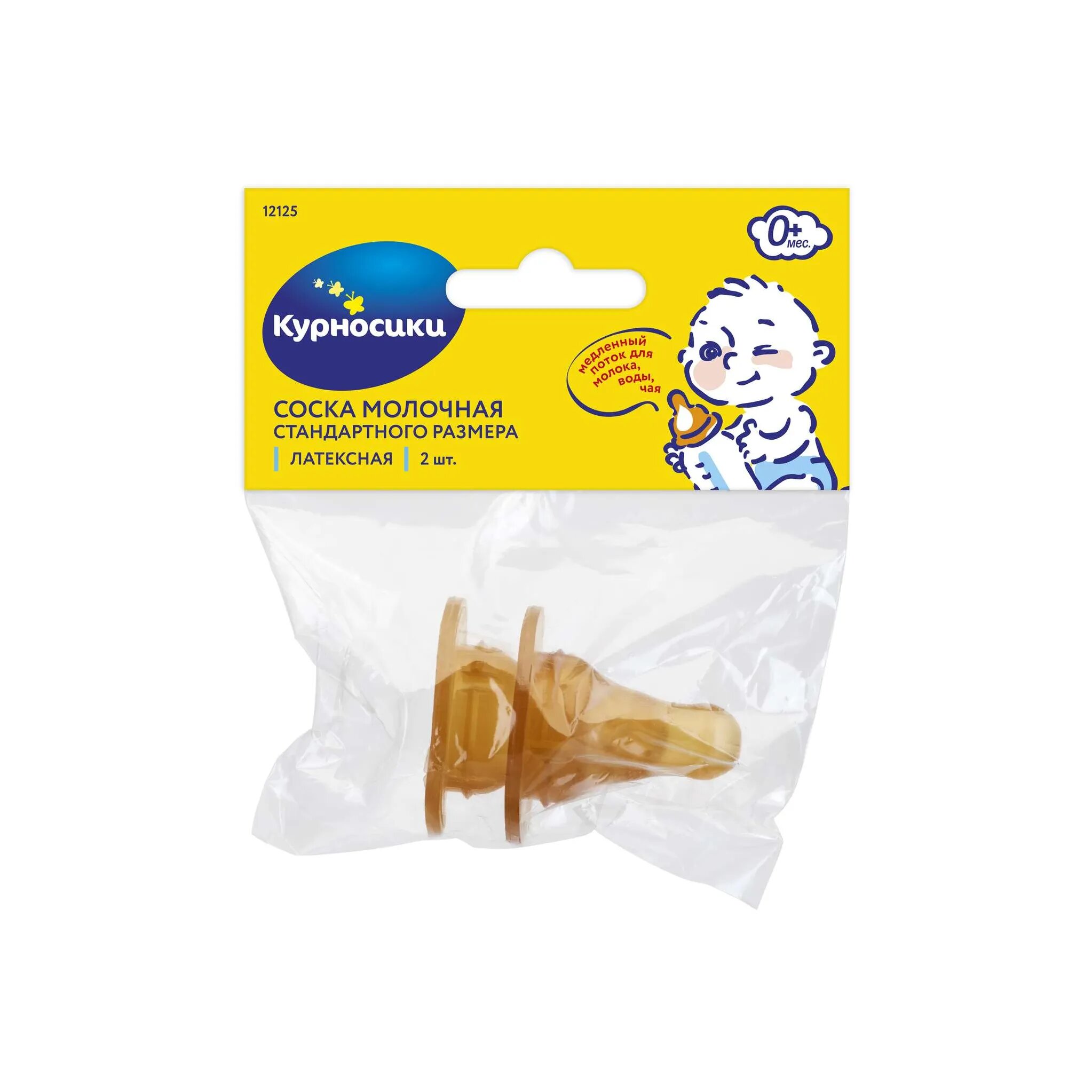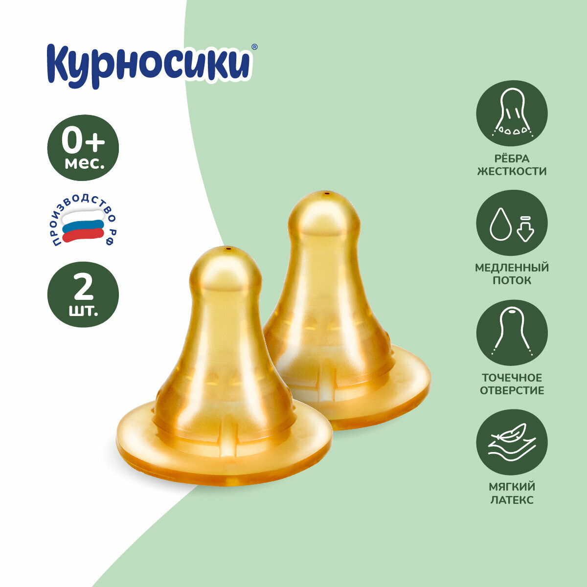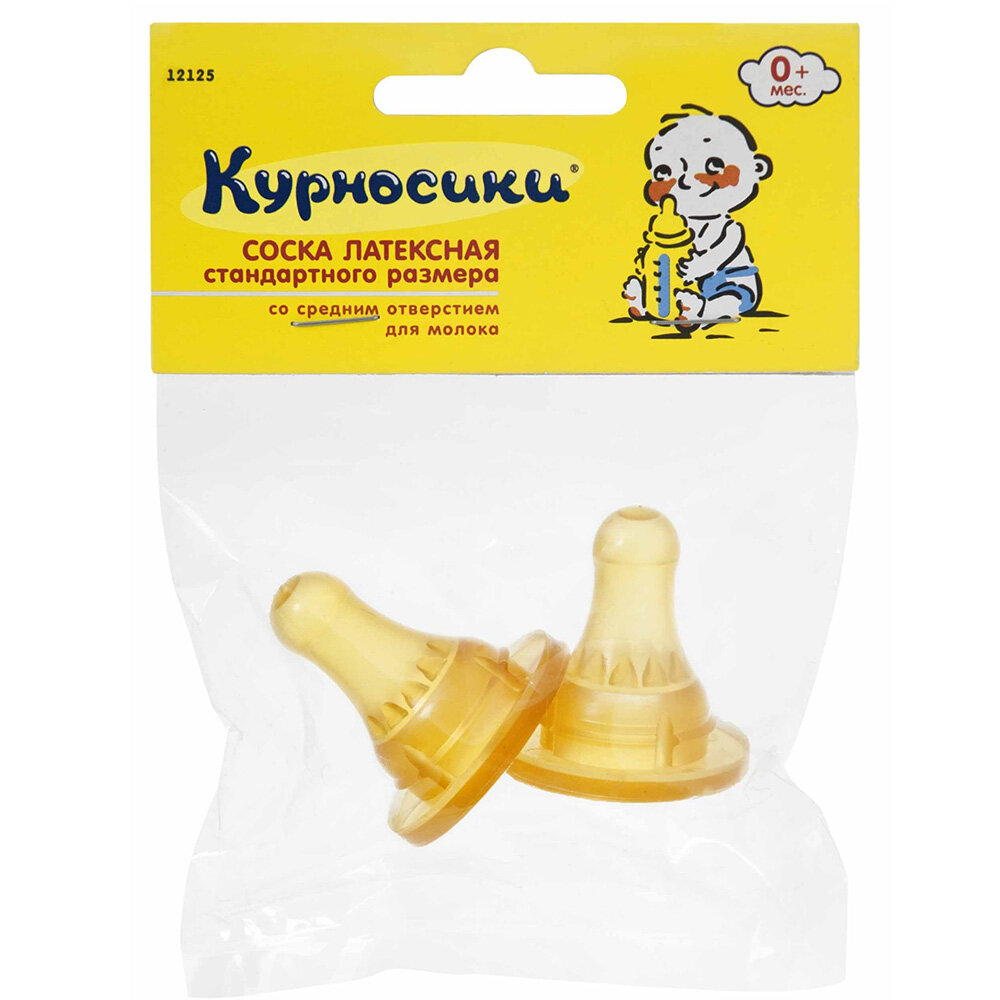 Соска для бутылочки латексная Курносики, медленный поток, 0+ мес, 2шт