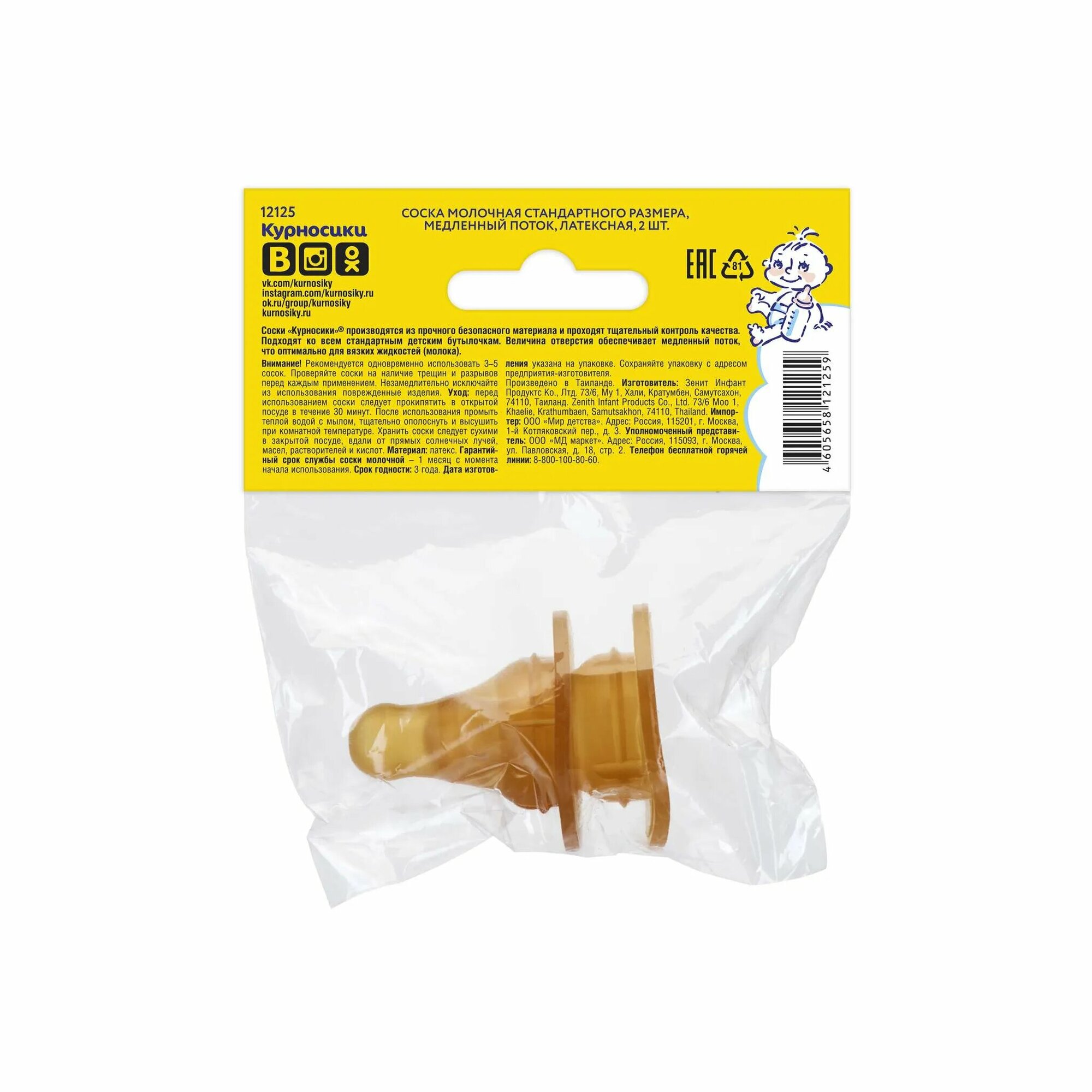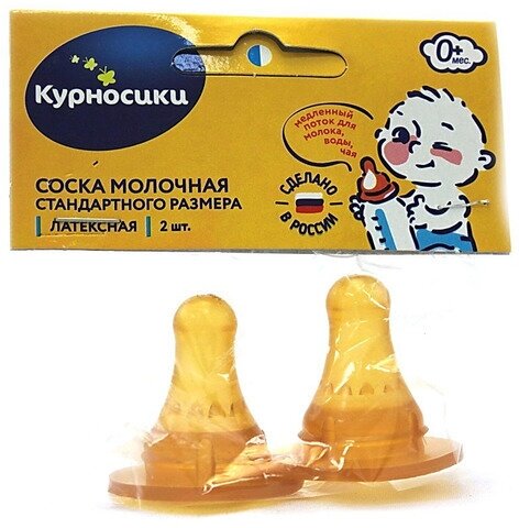 Соска латексная Курносики стандартного размера, медленный поток, 0+ мес./ 2шт/ интересное: