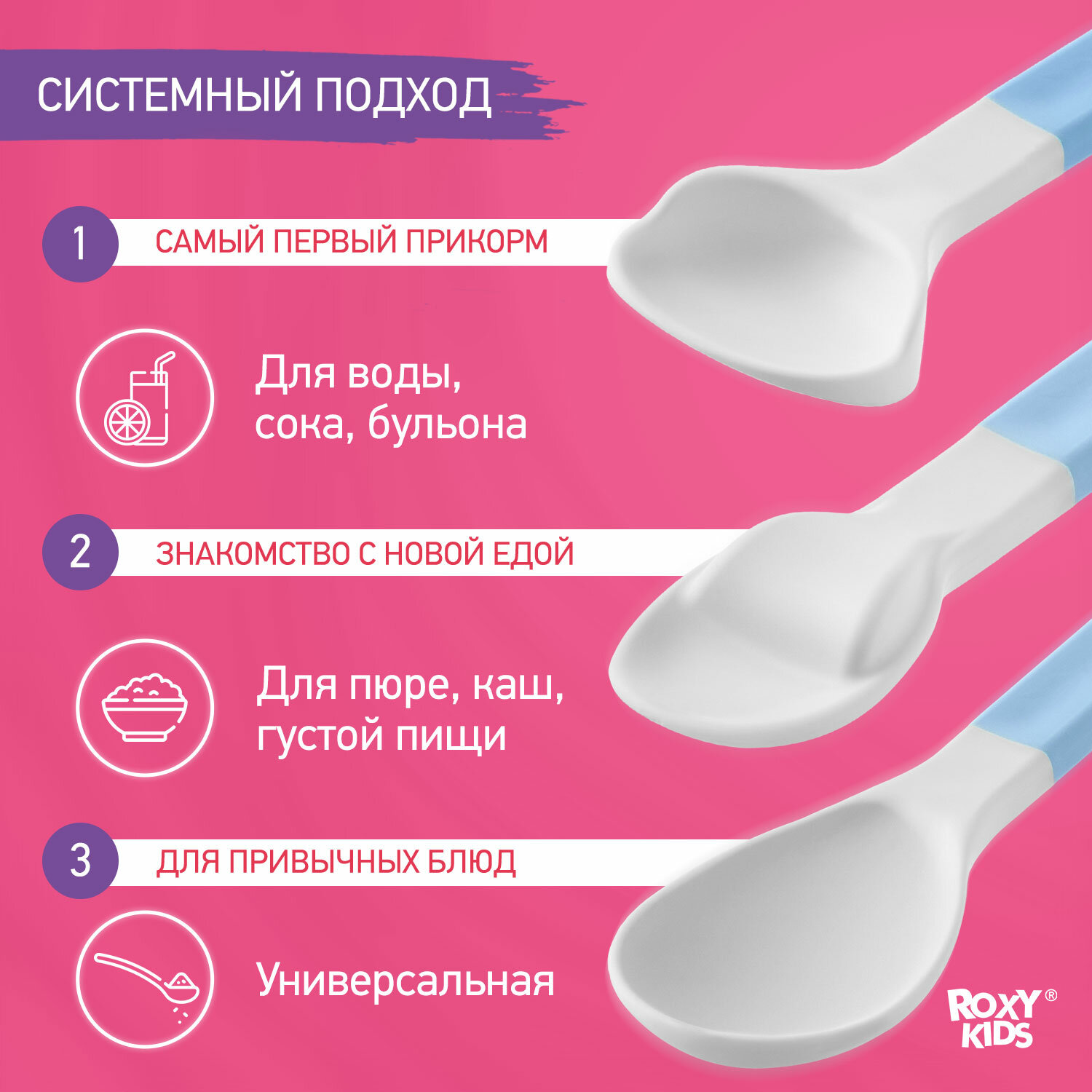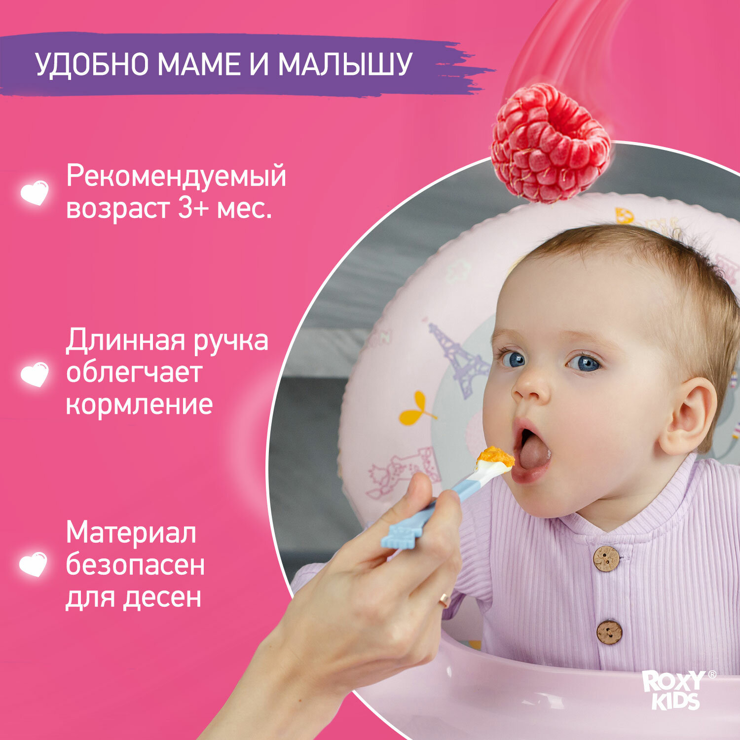 Ложка детская для кормления силиконовая, от 5 мес., цвет розовый