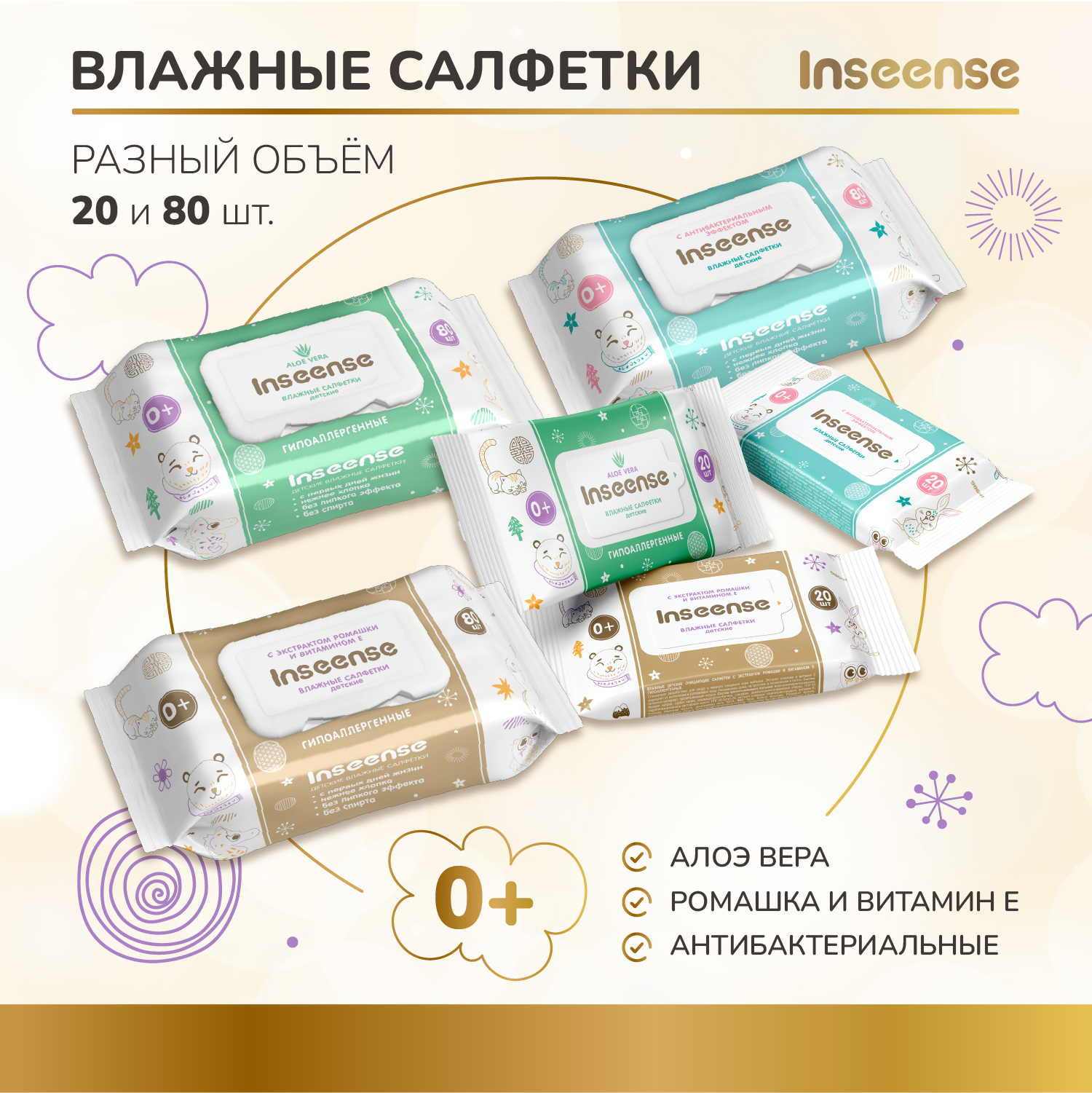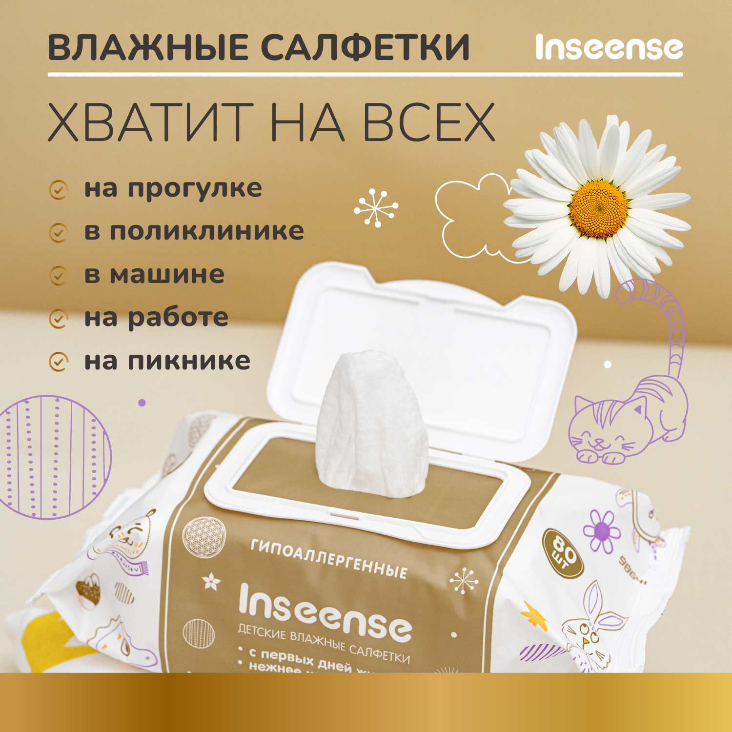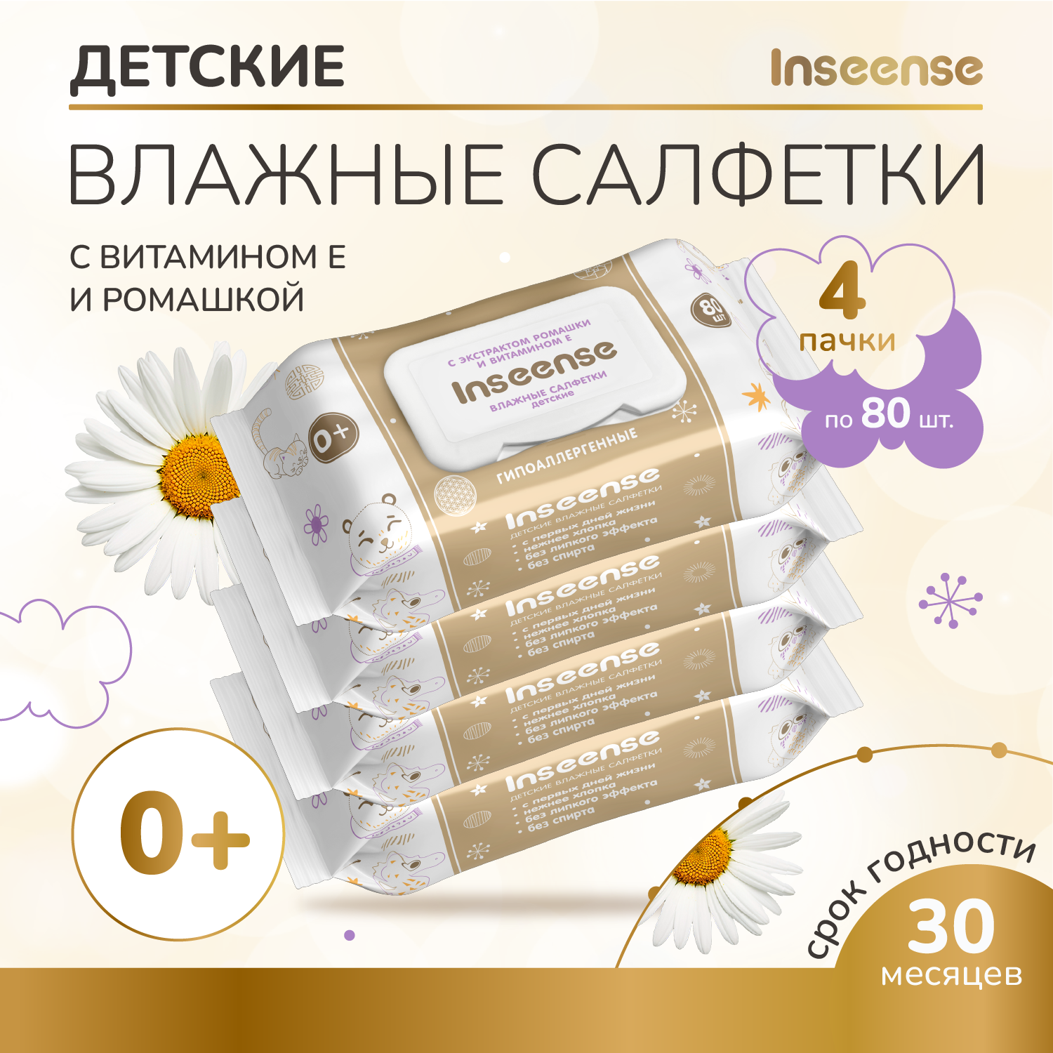 Салфетки Inseense влажные для детей c экстрактом ромашки и витамином Е, пластиковая крышка, 80 шт., 4 уп.
