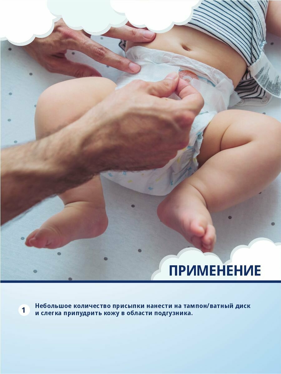 | Дополнительная информация | Применение: Небольшое количество присыпки нанести на тампон и припудрить чистую кожу. Для младенцев (с рождения). |