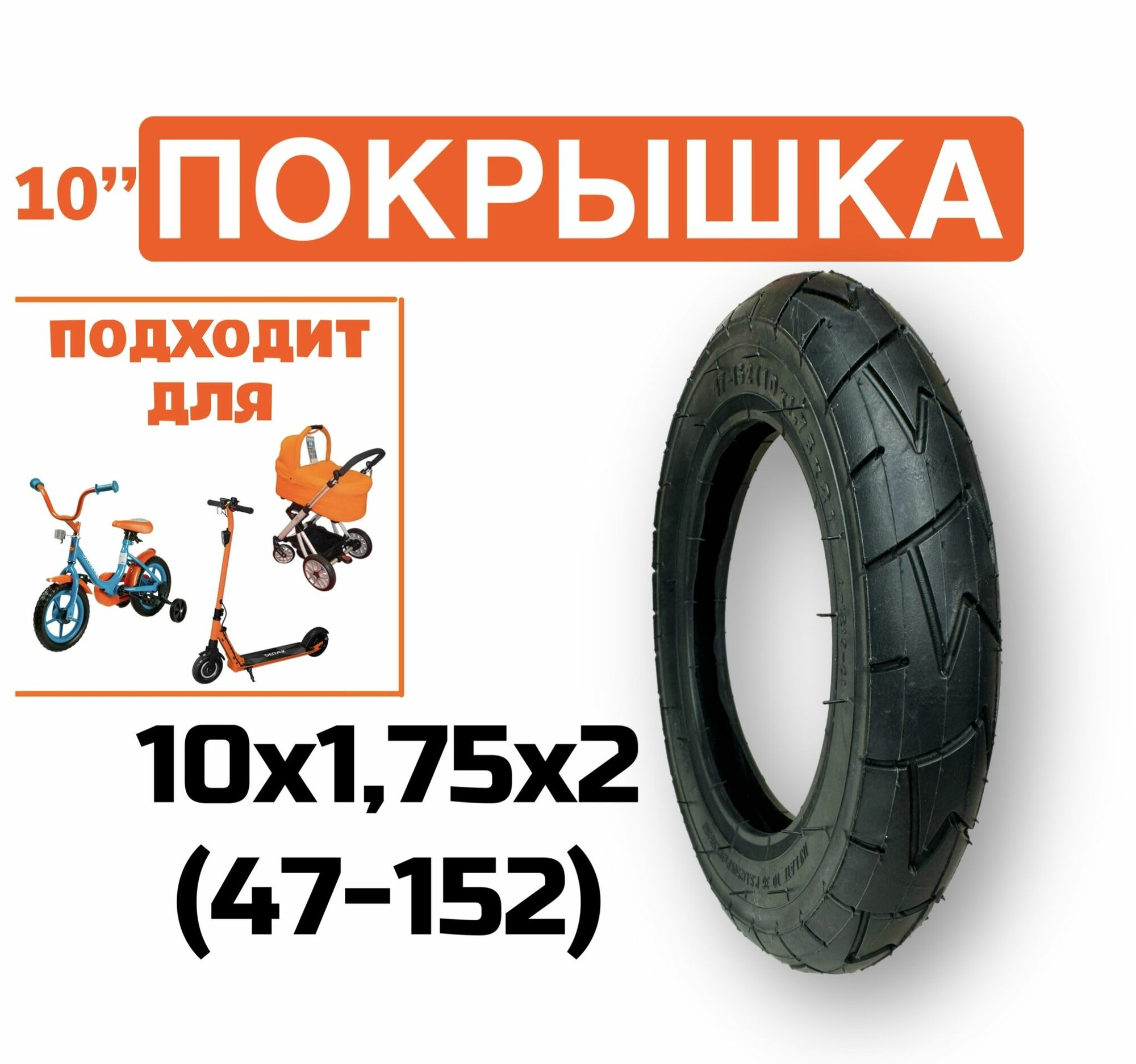 Покрышка для детской коляски 10 дюймов 10х1,75х2 (47x152)