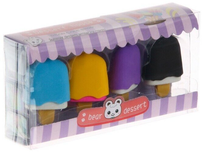 Набор ластиков"Мороженое ", 4 штуки, микс