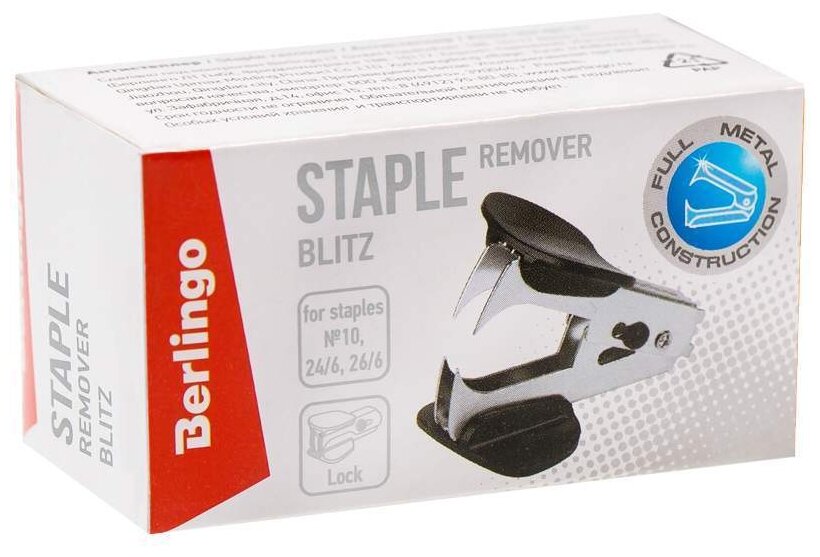 | Дополнительная информация | с двухсторонним захватом; для удаления скоб № 10, 24/6, 26/6 открытого и закрытого типа скрепления; с фиксатором для хранения в сложенном положении |