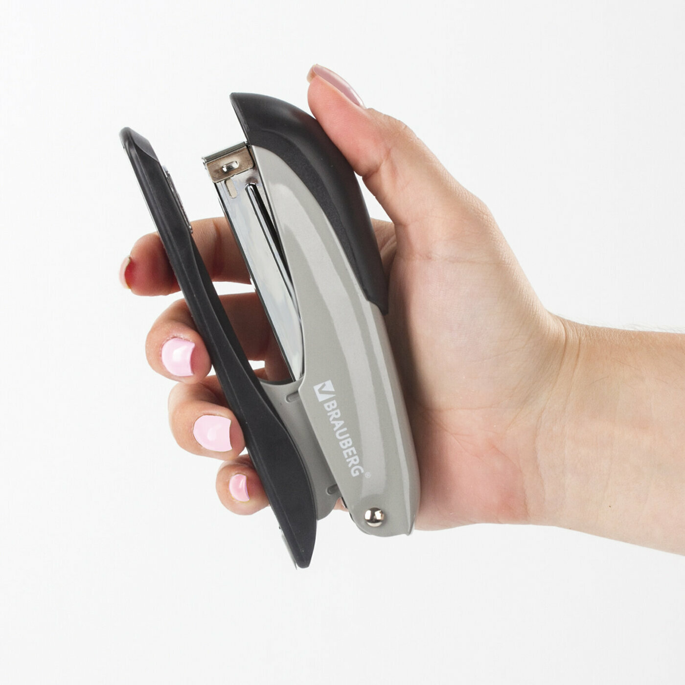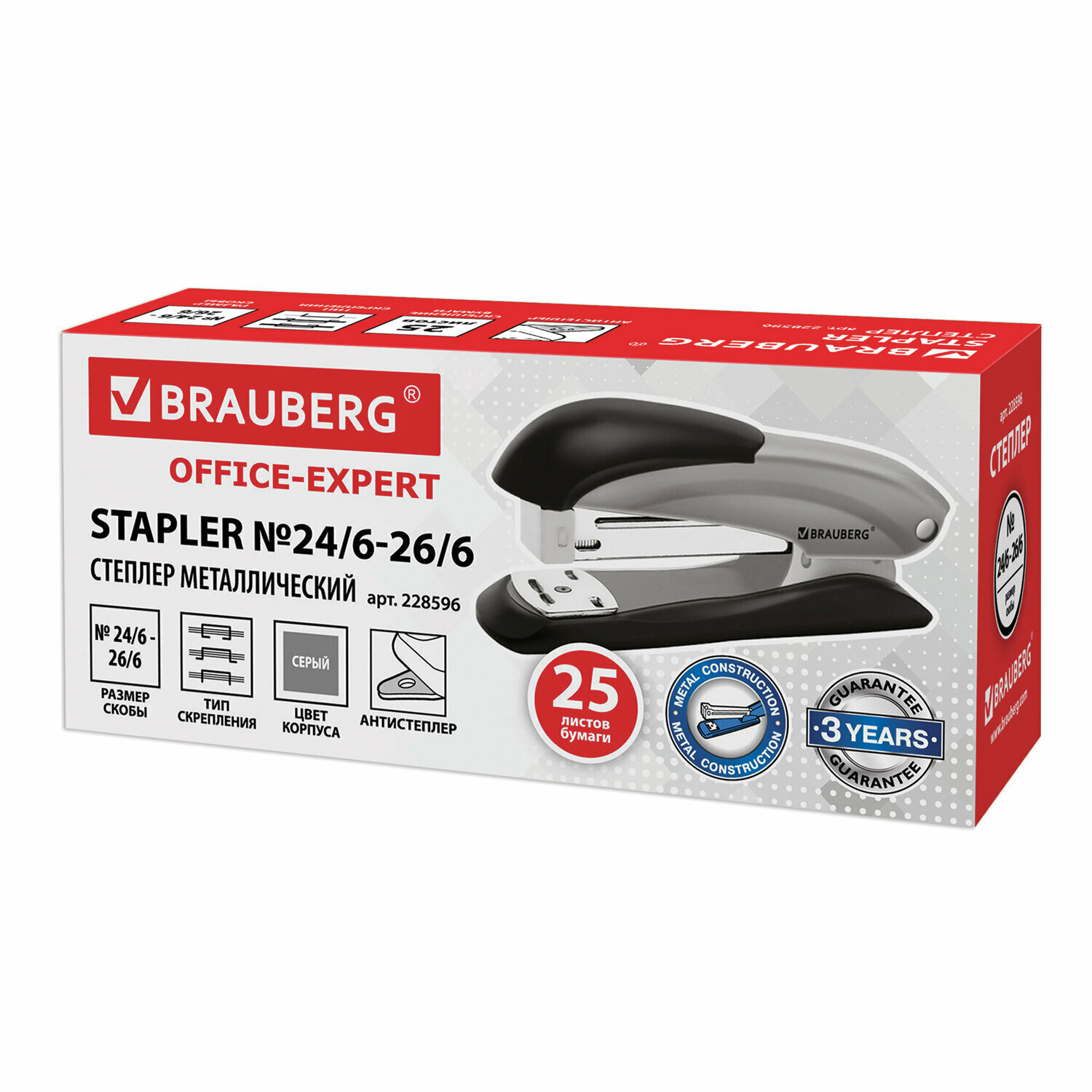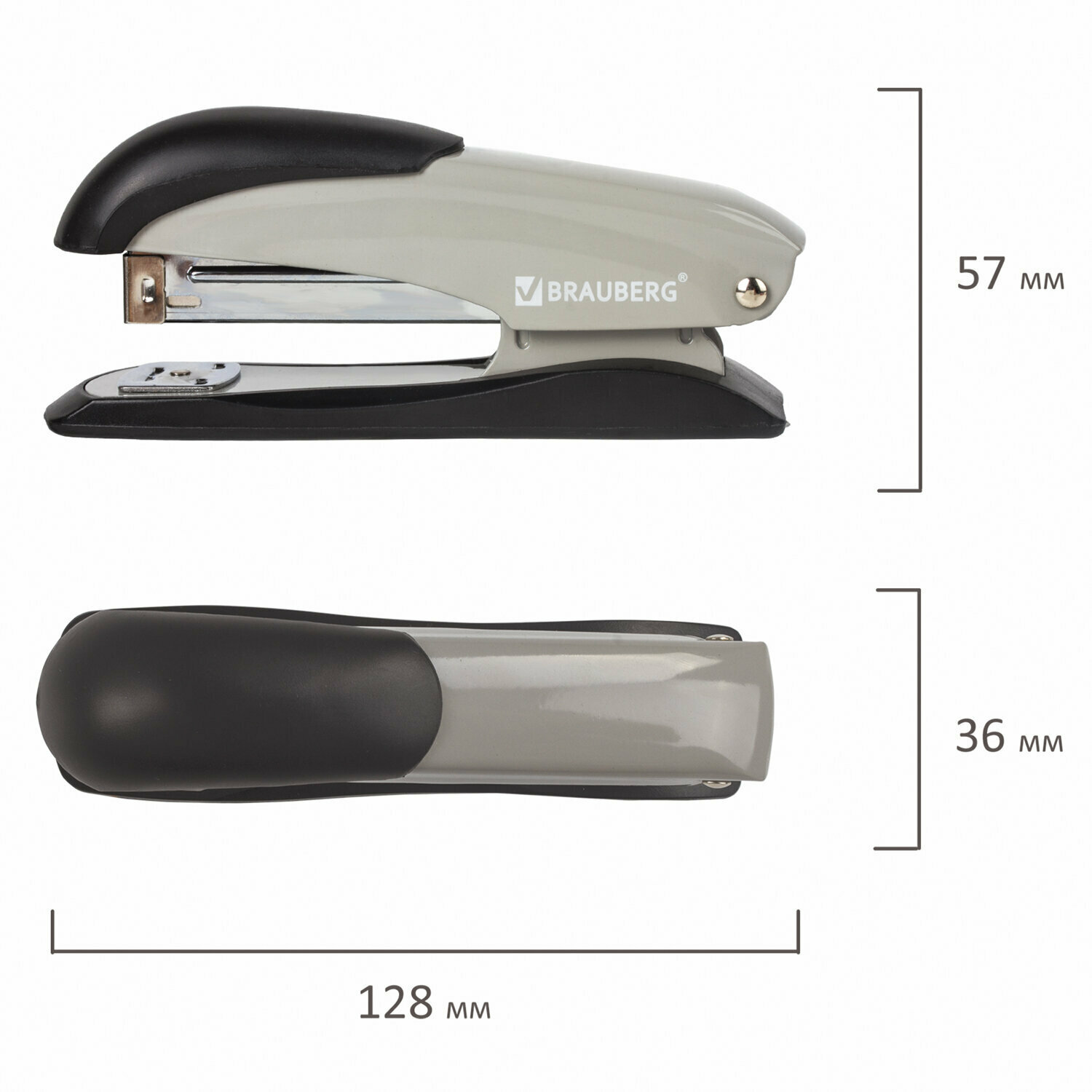 Степлер №24/6, 26/6 металлический BRAUBERG "Office-Expert", до 25 листов, серый, 228596