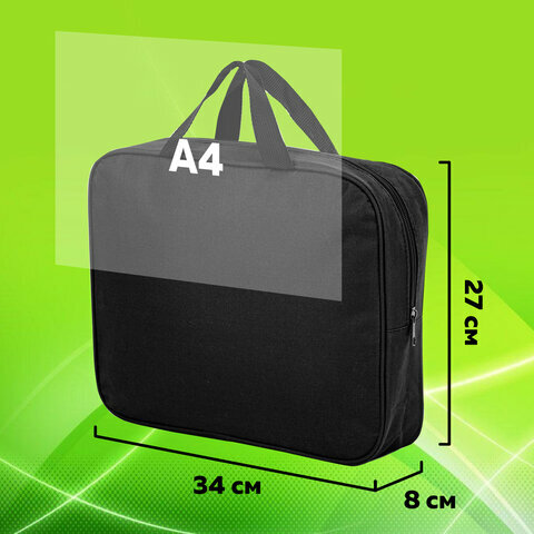 Папка-сумка, портфель для документов, бумаг и школы канцелярская с ручками на молнии Staff Everyday, А4, ширина 80мм, полиэстер, черная