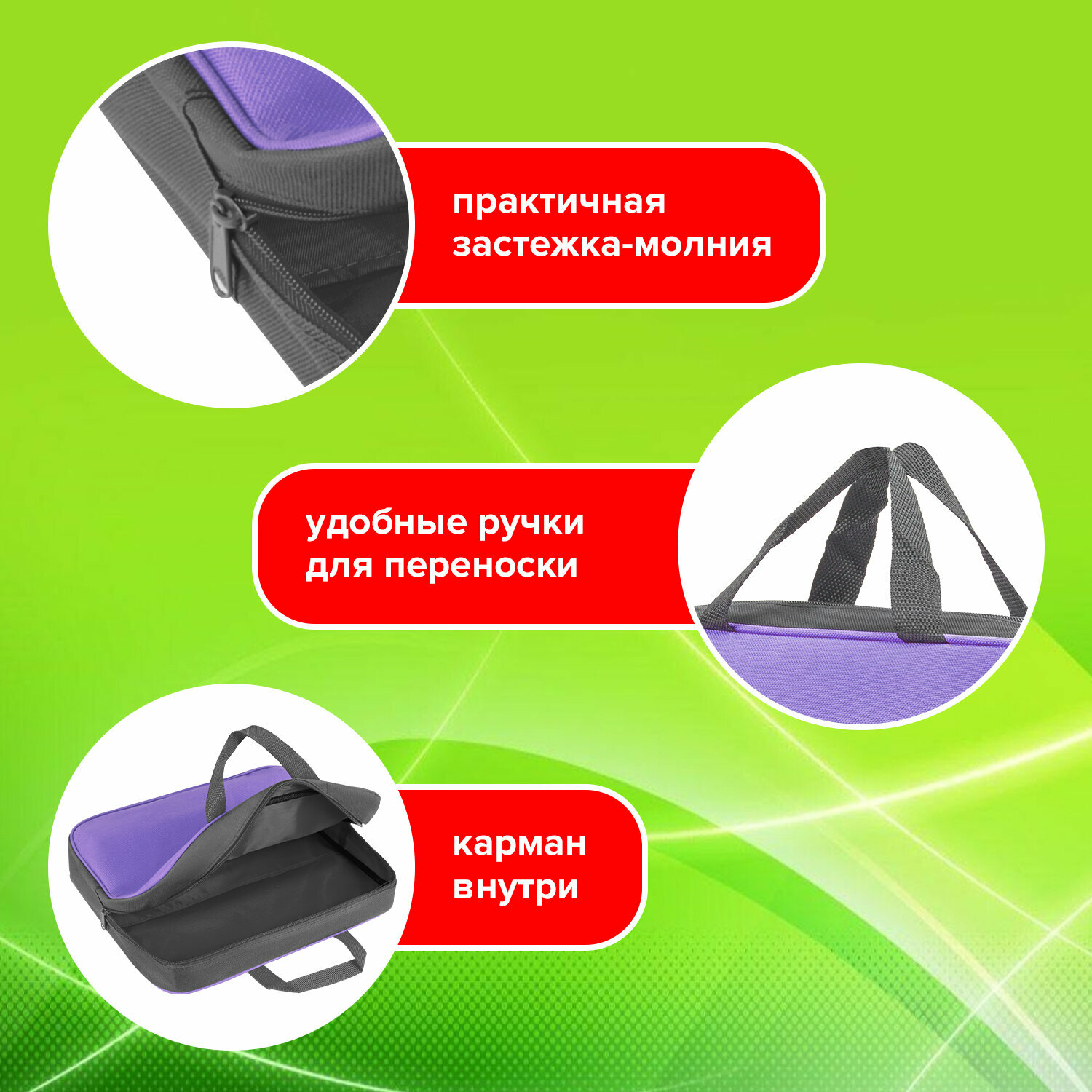 Папка на молнии с ручками STAFF EVERYDAY, А4, ширина 80 мм, полиэстер, зеленая, 270742, в комплекте 1шт