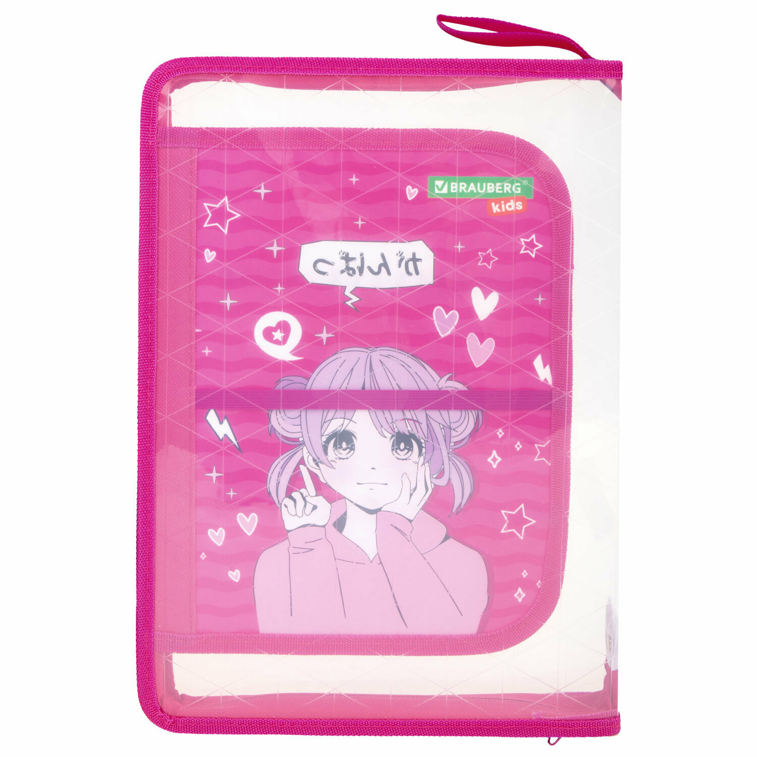 Купить Папка для труда на молнии Brauberg Kids А4, 1 отделение, прозрачная, органайзер, Anime style, 272208