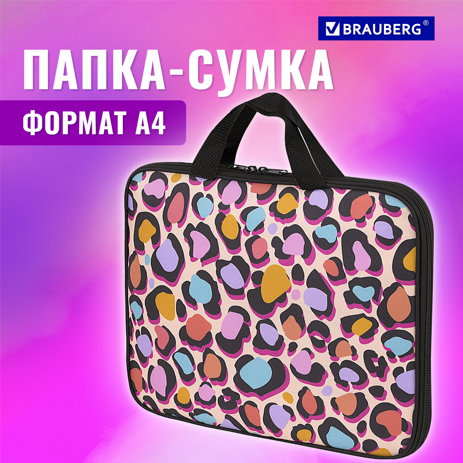 Папка на молнии с ручками BRAUBERG А4, 1 отделение, полиэстер, 20мм, Fun Spots, 271477