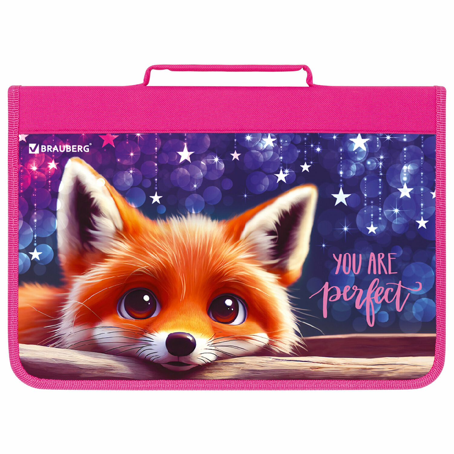 Купить Папка для тетрадей, труда, рисования и изо А4 для девочек на молнии с ручкой, канцелярия для школы, органайзер 1 отделение, Brauberg Cute fox, 272217