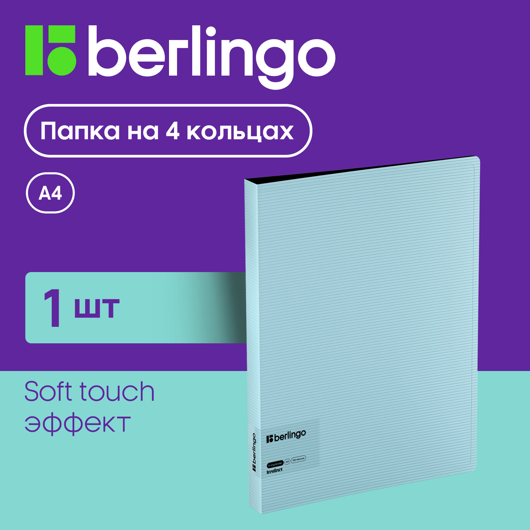 Папка на 4 кольцах Berlingo "Instinct" А4, 35мм, 700мкм, D-кольца, с внутр. карманом, мятный (1 шт)