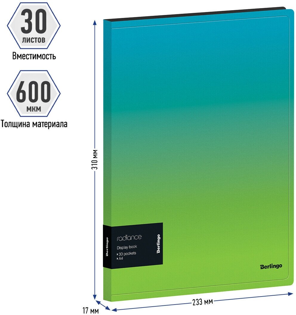 Папка с 30 вкладышами Berlingo Radiance, 17мм, 600мкм, с внутренним карманом, голубой, зеленый градиент