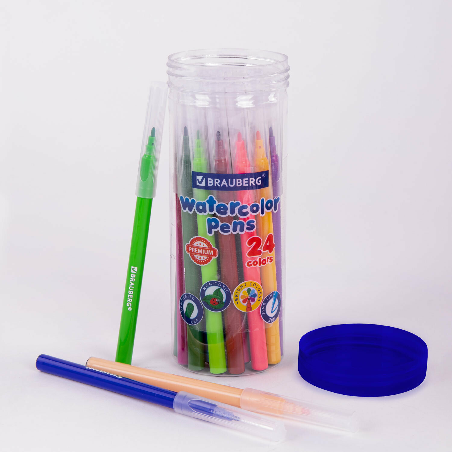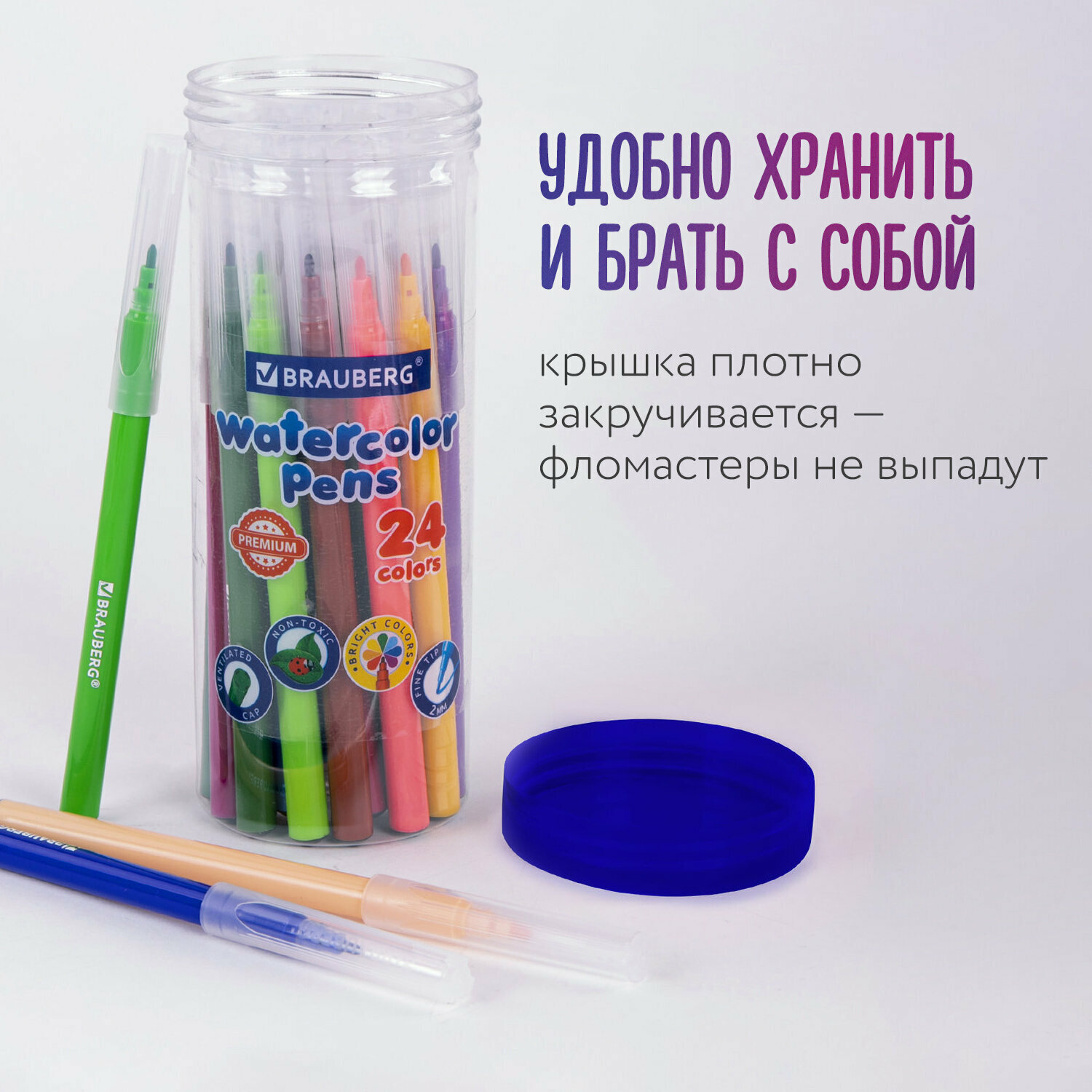 Купить Фломастеры для рисования для детей набор в тубе классические 24 цвета, вентилируемый колпачок, Brauberg Premium, 152199