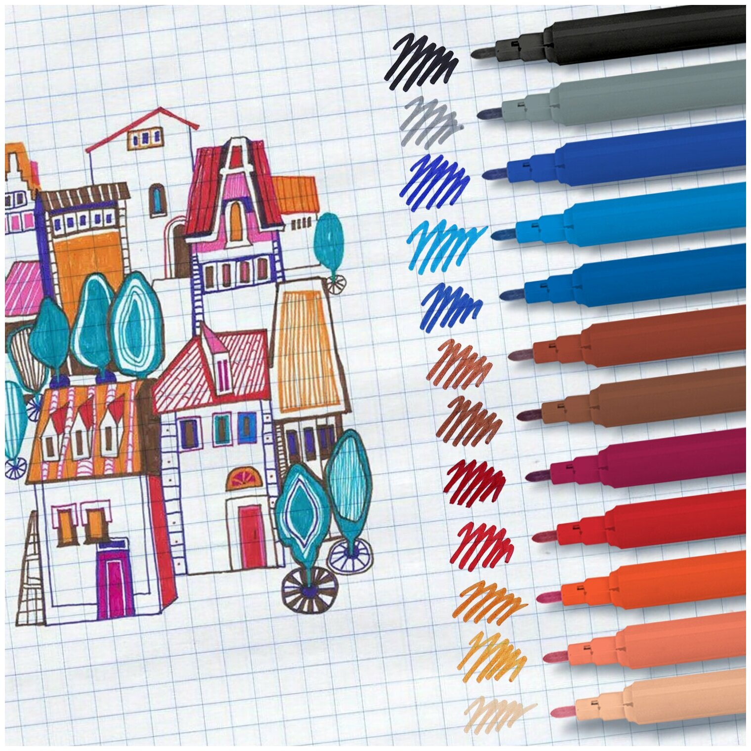 Фломастеры для рисования для детей набор Юнландия Водный Мир, 12 цветов, трехгранные, вентилируемый колпачок, картон, 152182