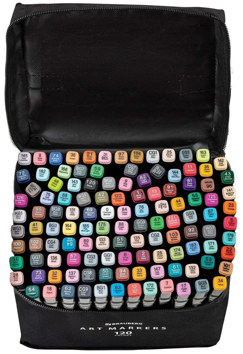Маркеры для скетчинга двусторонние, набор 120 шт, текстильный чехол, BRAUBERG, 152234, 1 набор в компл.