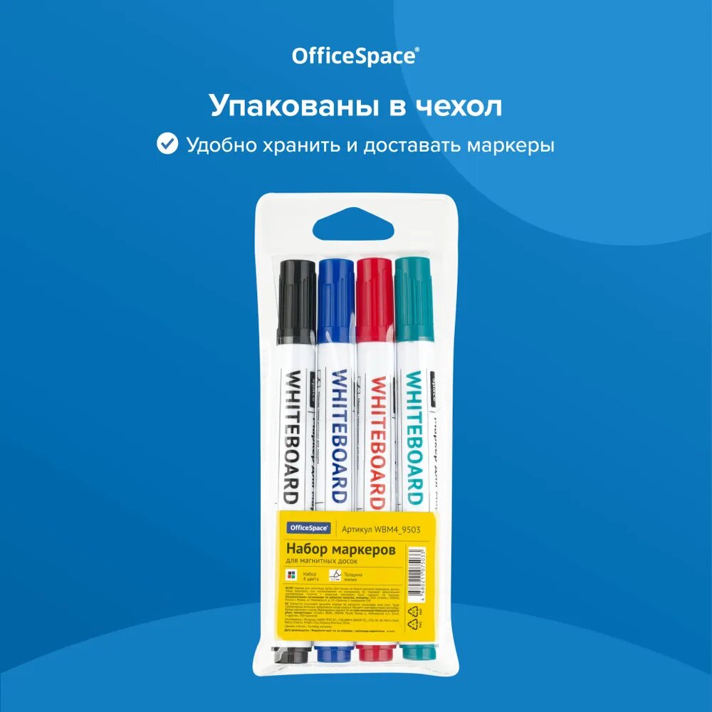 Купить Набор маркеров для белых досок OfficeSpace 4цв., пулевидный, 2,5мм