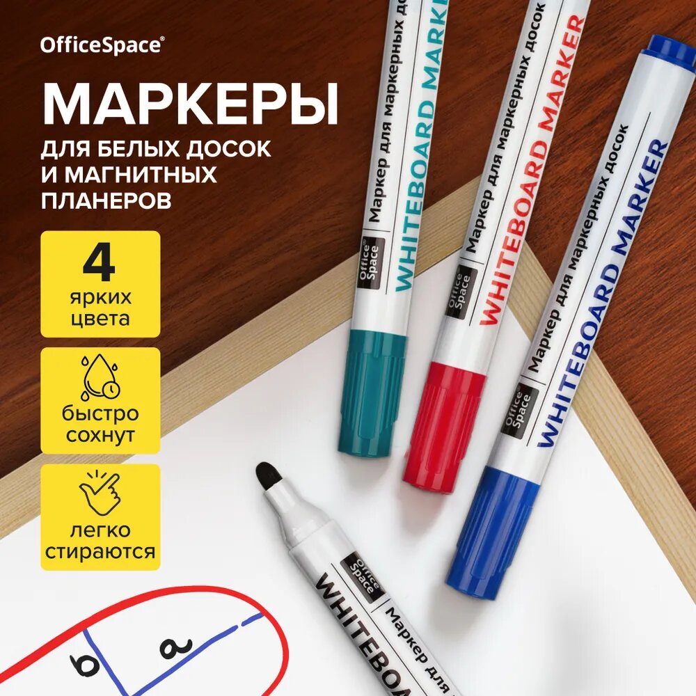 Набор маркеров для белых досок OfficeSpace 4цв., пулевидный, 2,5мм интересное: