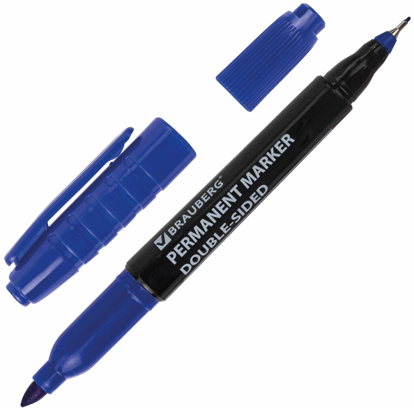 Купить Маркер перманентный двусторонний BRAUBERG "Double", черный, наконечники 0,8/3 мм, 151635