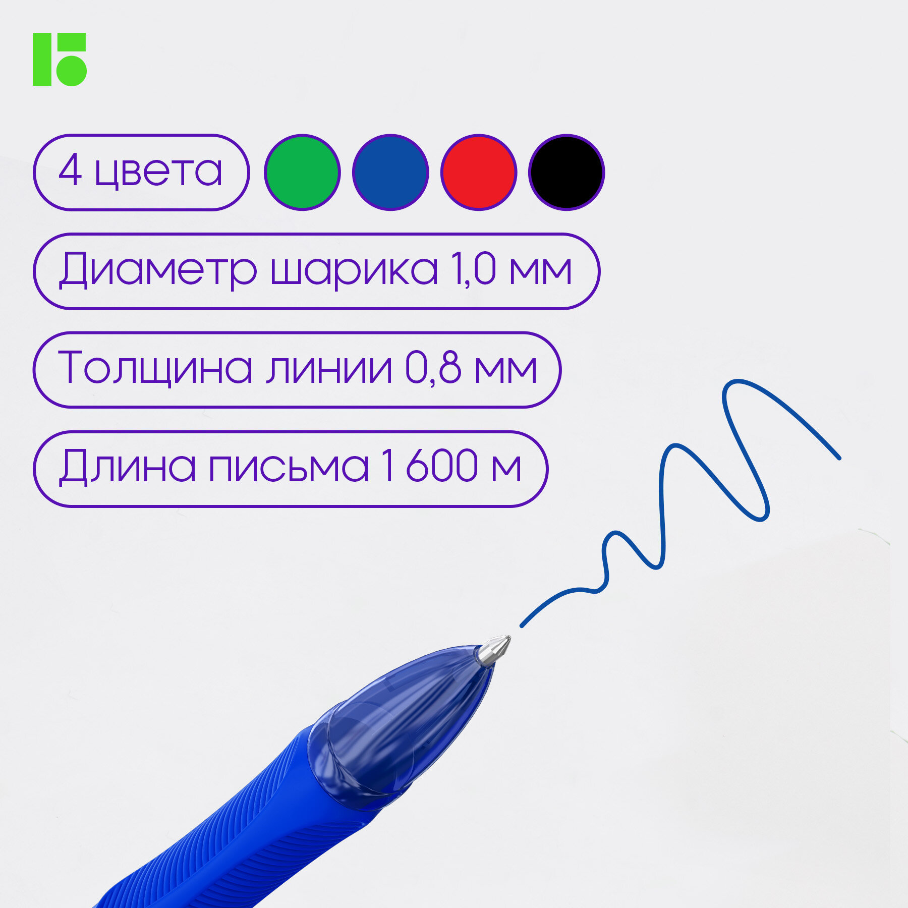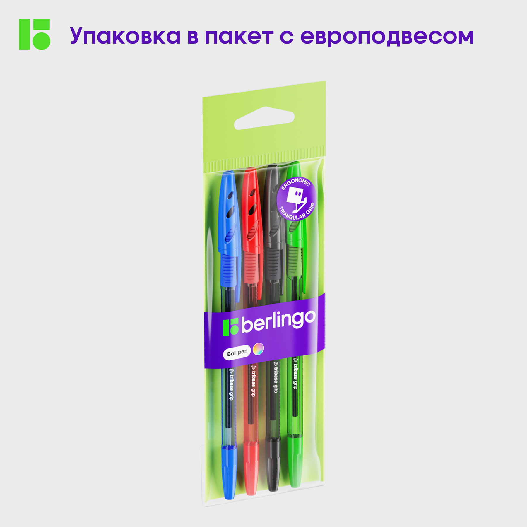 Набор шариковых ручек Berlingo "Tribase grip" (0.8мм, 4 цвета чернил) 4шт., европодвес (CBp_10204), 24 уп. интересное: