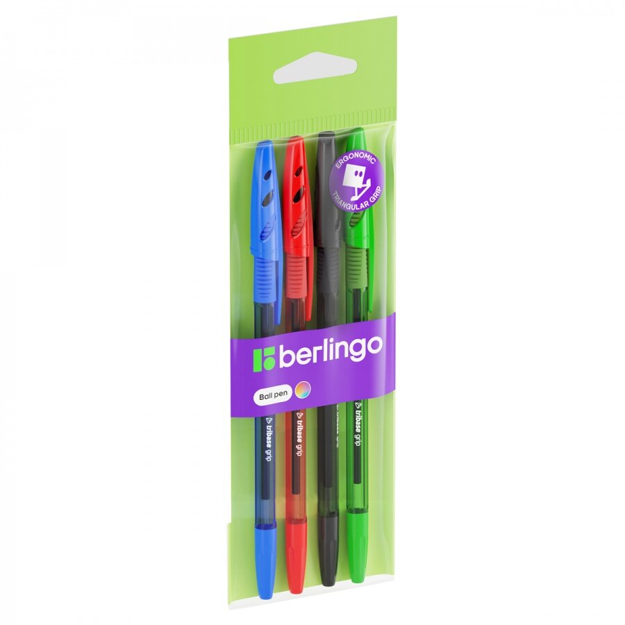 Набор шариковых ручек Berlingo "Tribase grip" 4 шт., 4 цв., 1,0мм, грип, европодвес