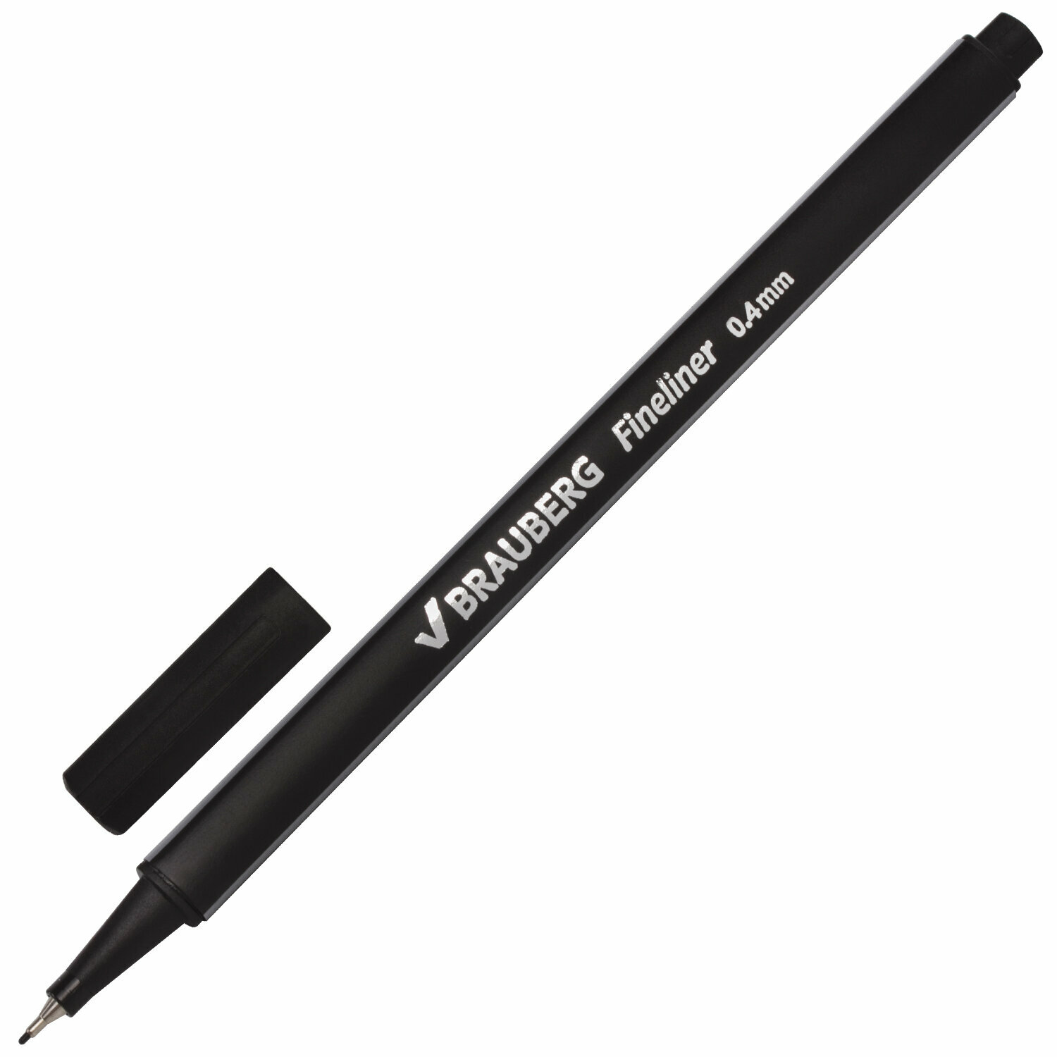 Ручка капиллярная (линер) BRAUBERG "Aero", черная, трехгранная, металлический наконечник, линия письма 0,4 мм, 142252 (арт. 142252)