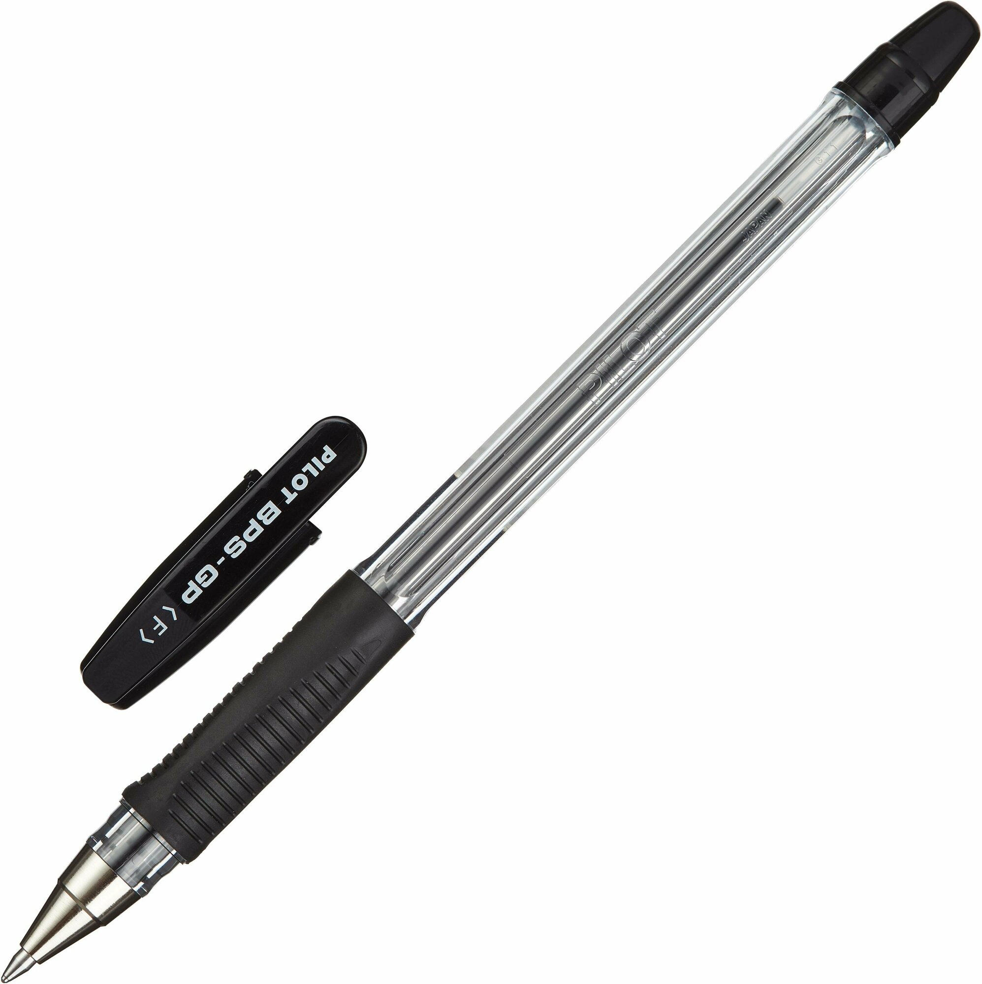 Ручка шариковая масляная с грипом PILOT "BPS-GP", черная, корпус прозрачный, узел 0,7 мм, линия письма 0,21 мм, BPS-GP-F, BРS-GP-F